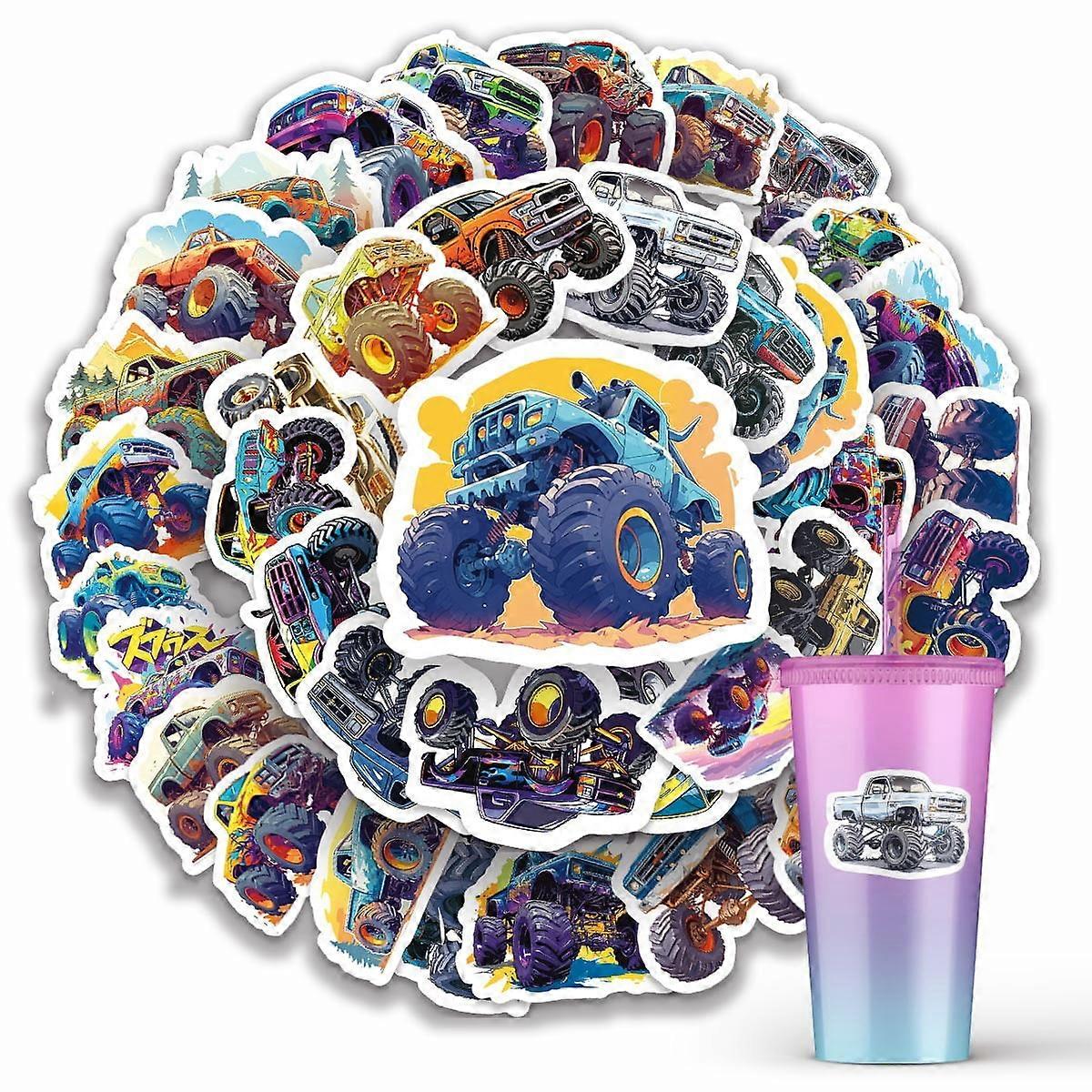 50-Pack Original Off-Road Monster Truck Stickers - DIY Cup Decals for Kids, Matte Paper Set