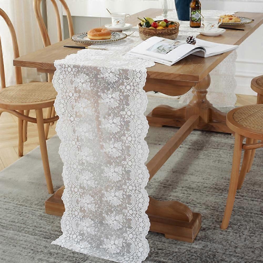 Vintage White Lace Table Runner 14.75*55" - Embroidered Floral Design, Perfect for Rustic Chic Wedding, Boho Party Decor