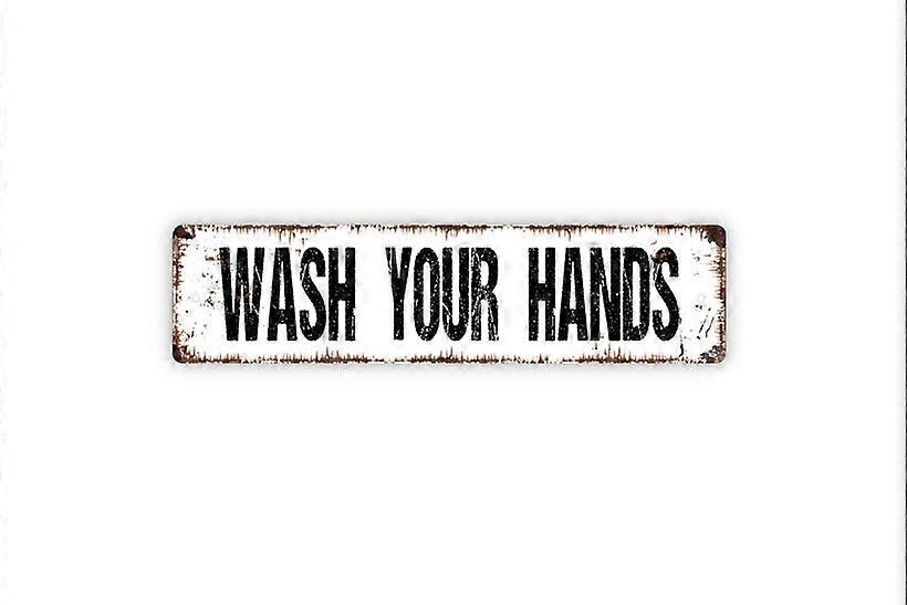 Wash Your Hands Sign Rustic Metal Street Sign or Door Name Plate Plaque Size: 4 x 16 Inch