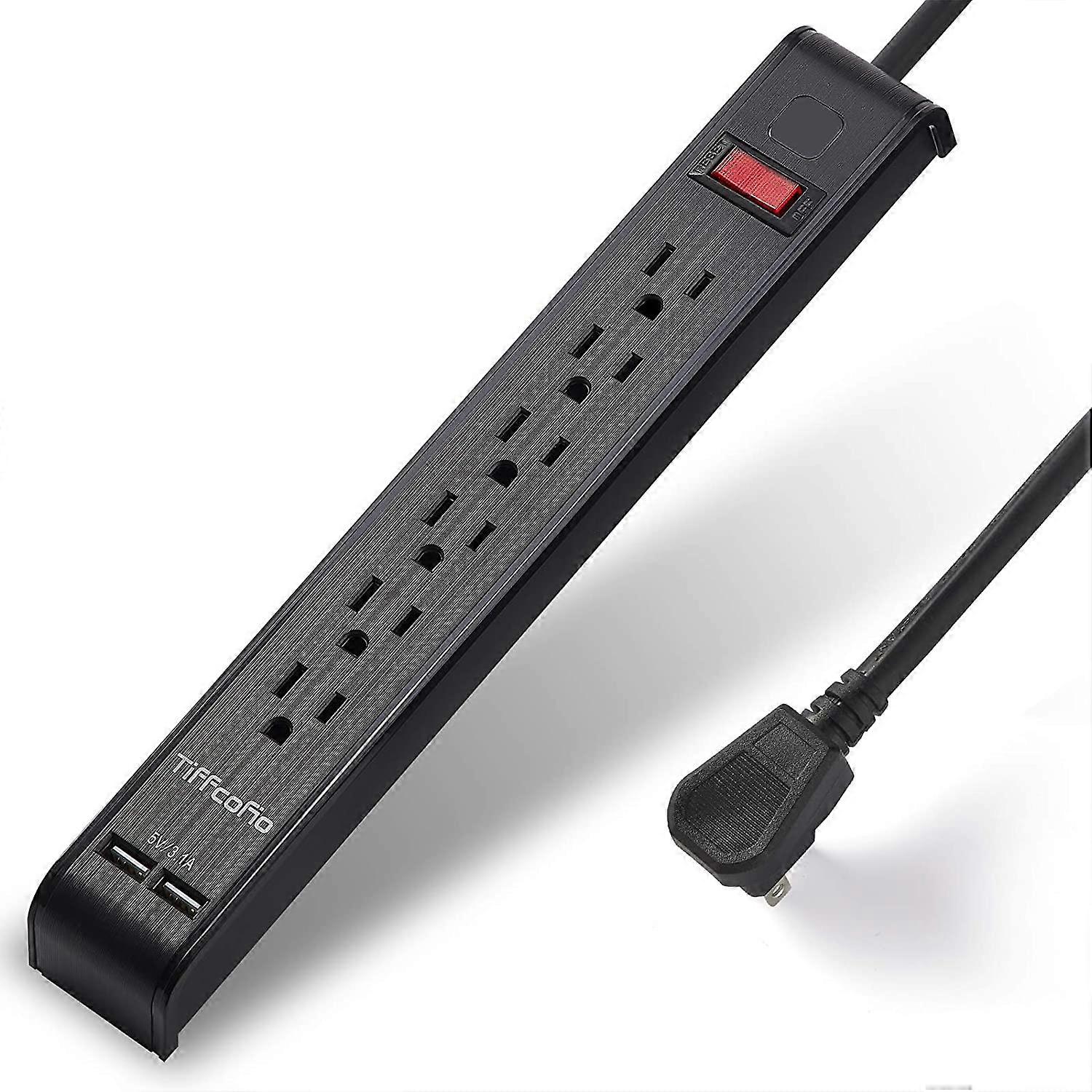 Power Strip Surge Protector with 6 Outlets & 2 USB Ports, 10 Feet Extension Cord, Flat Plug Outlet Strip,