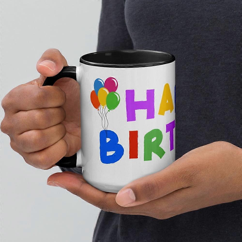 HAPPY BIRTHDAY, Coffee Mug, Mug with Color Inside, makes a great gift, celebrate a birthday TODAY! (Black, 15 oz)
