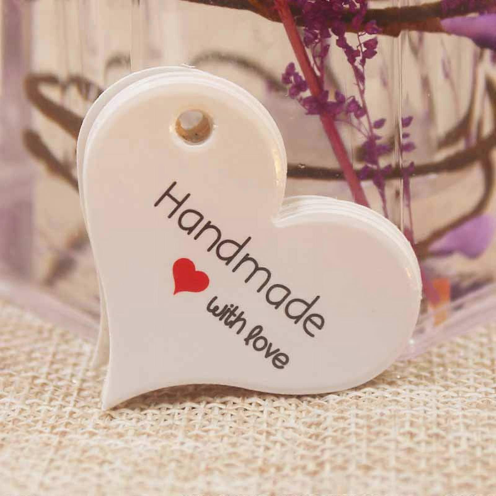 100pc Paper Gift Tags Hang Tags For Arts and Crafts For Valentine's Day Thanksgiving Heart with Word Thank You White 32x39x0 4mm Hole: 4mm