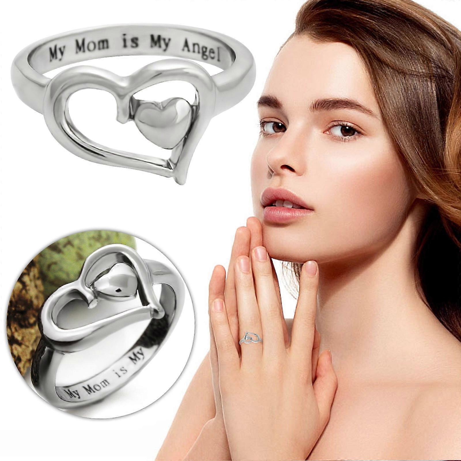 Jacenvly Engagement Rings For Women Clearance Women'S Rings Heart Lettering My Mom Is My Angel Jewelry Jewel Art Silver