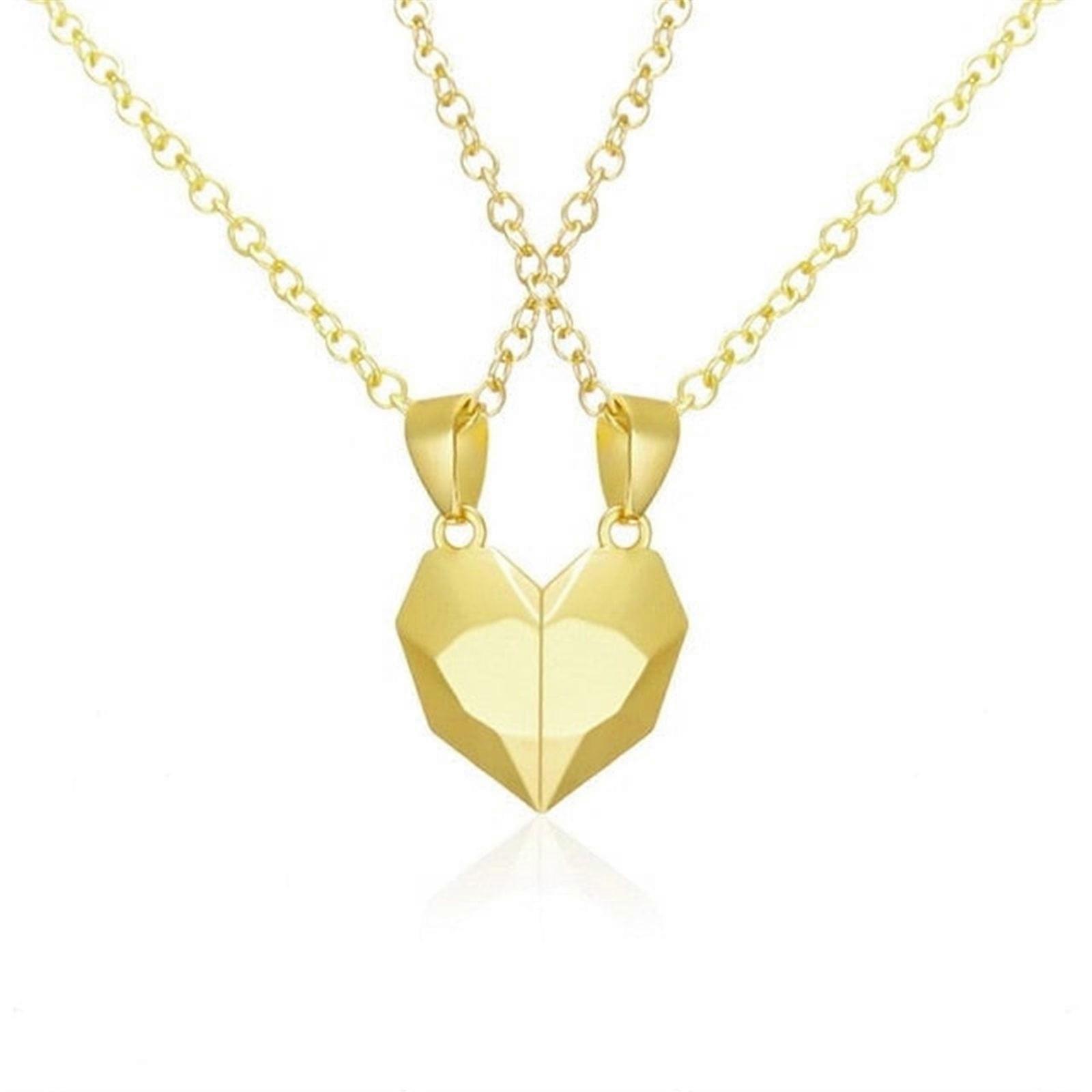 Kraoden Couple Necklaces, 3D Love Heart Magnetic Splicing Necklace, Compatible with Wishing Stone, Girlfriend Gift, Collarbone Chain