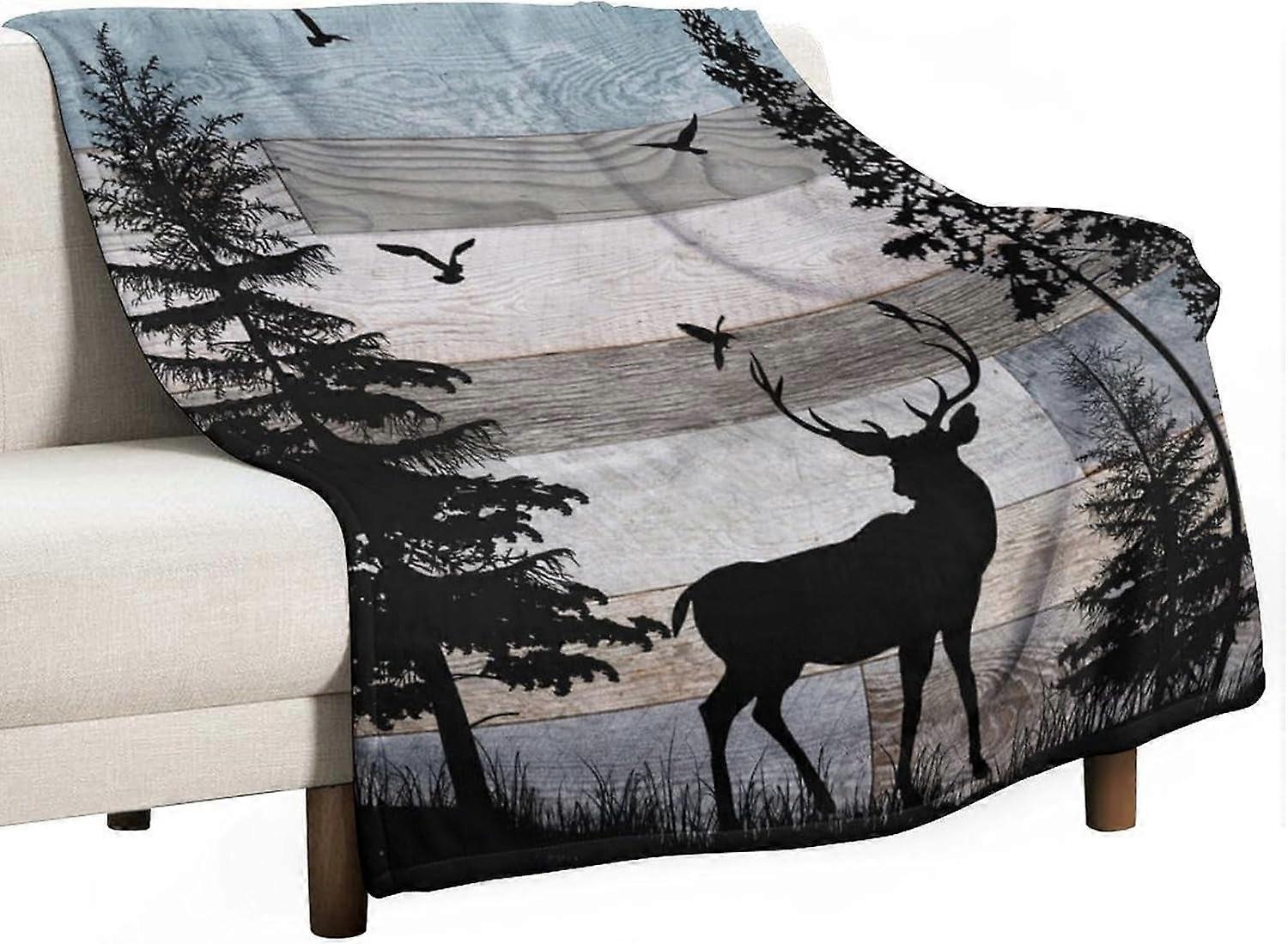 Rustic Deer Throw Blanket, Blue Brown Forest Animal Print, 30"x40" Cozy Blanket for Bed, Couch, Sofa, Travel – Compatible with Cabin & Farmhouse