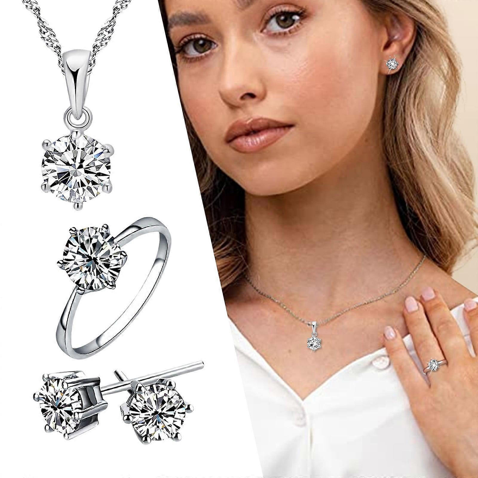 2024 Fashion Zircon Set Earrings Necklace Three Piece Jewelry Set For Women And Girls