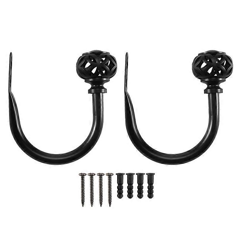 1 Pair of Metal Curtain Hooks - Retro Wall Mounted Curtain Hold Back Tiebacks Wall Hook Tassel Drapery Holder (Black)
