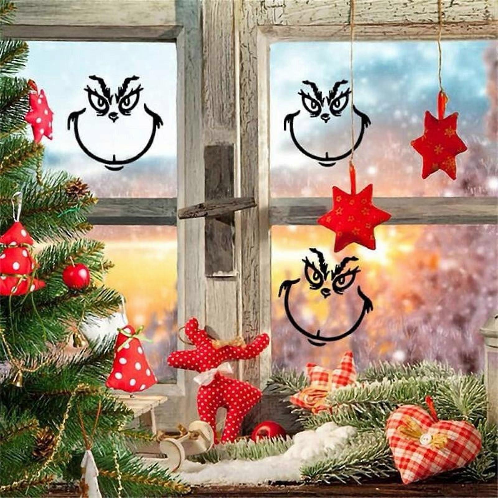 Christmas 20Pcs Grinch Stickers, Vinyl Face Decals, DIY Ornaments Decor - Compatible with Grinchmas