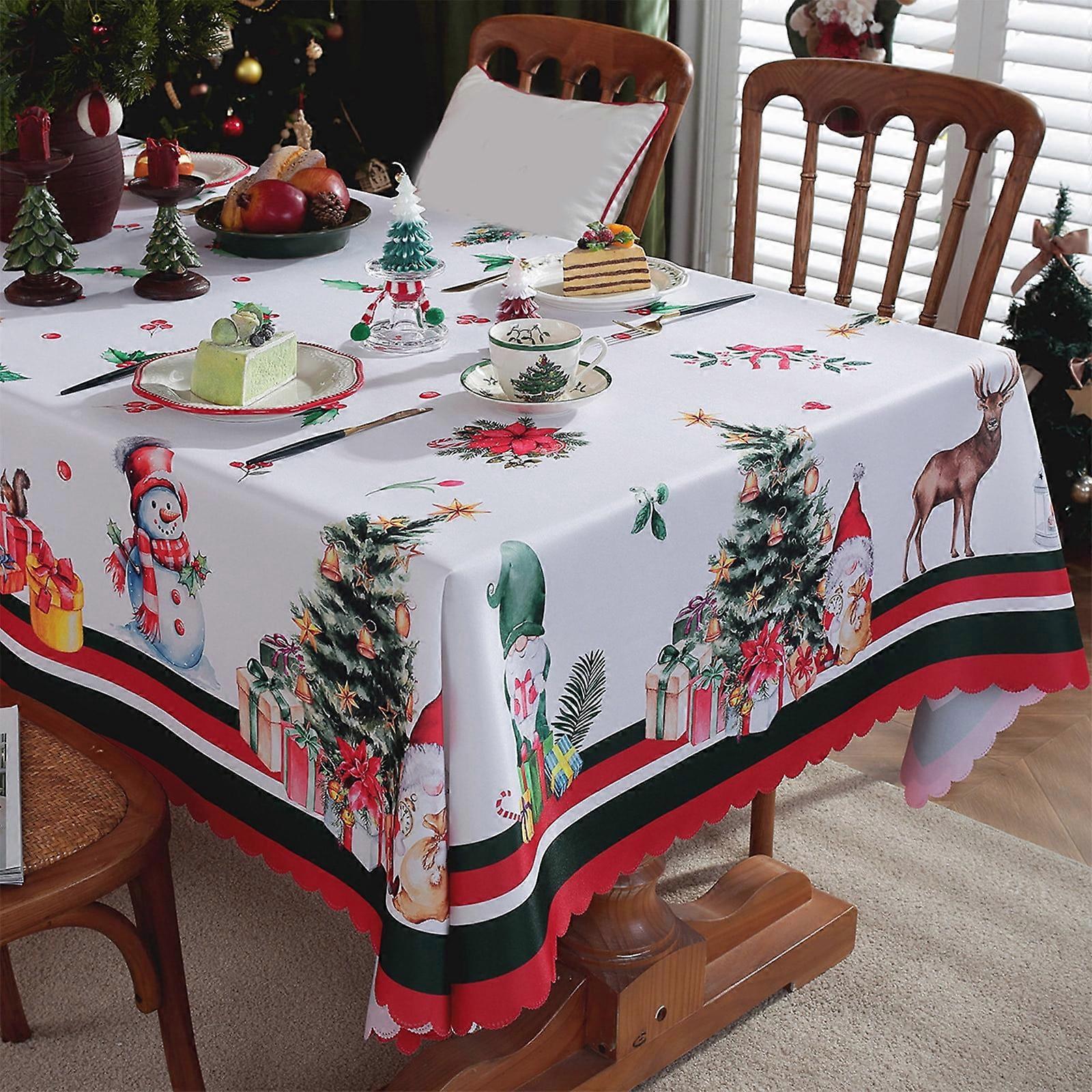 Christmas Tablecloth - Washable Holiday Woven Table Cover for Kitchen, Dining, Garden | Compatible with Coffee Table Decor