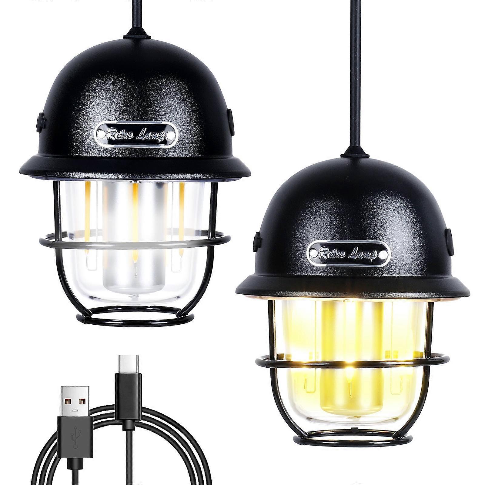 2Pcs Rechargeable LED Vintage Lantern with USB-C, 4 Light Modes, Portable Camping & Outdoor Hanging Light compatible with Tent