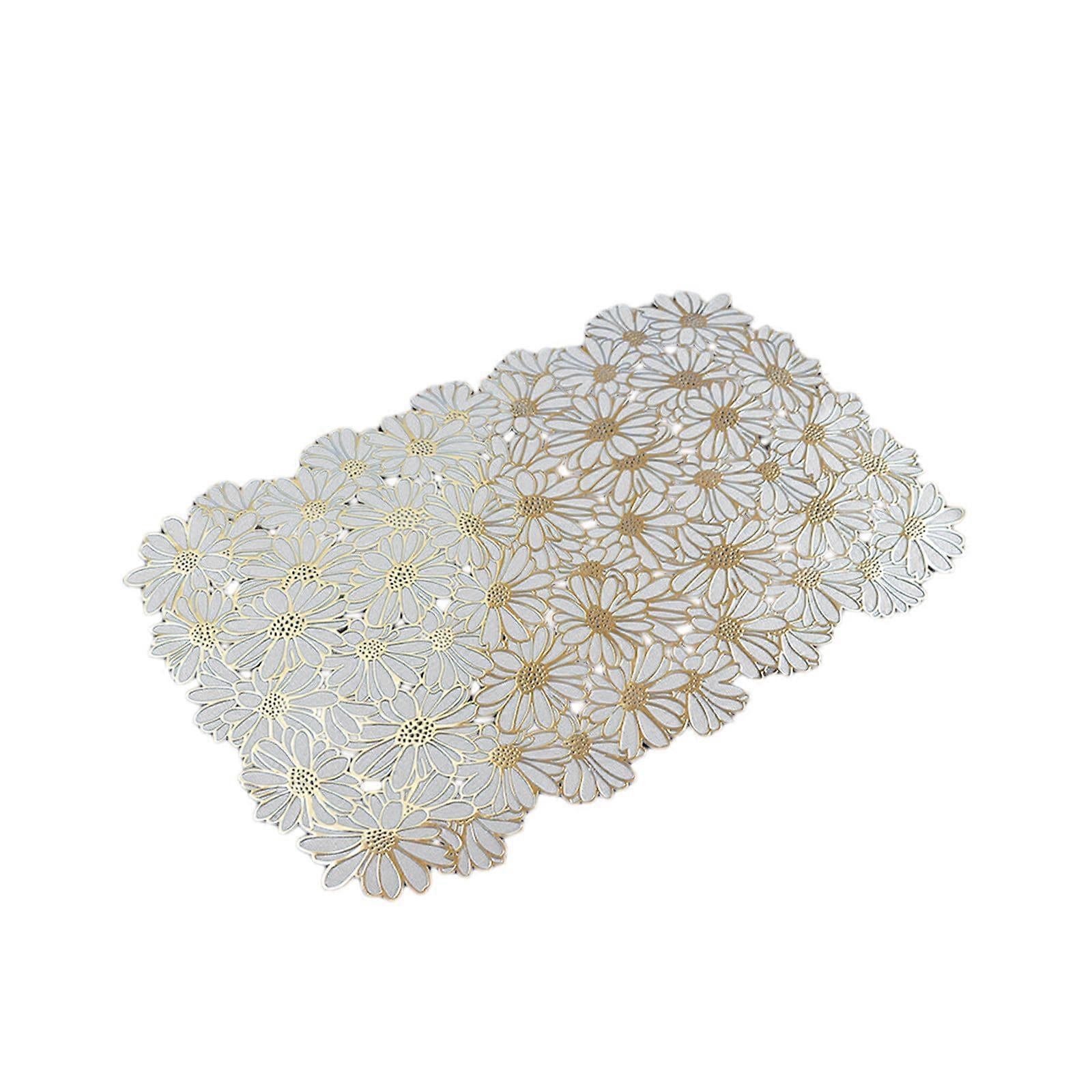 Washable Placemats Set of 6, Gold Flower Blue PVC Non-Slip Table Mats, Wipeable for Kitchen, Garden, Picnic, Dining Table