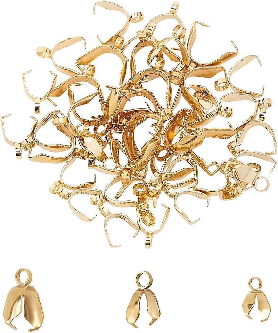 3 Sizes 48pcs Gold Pinch Bails Stainless Steel Pendant Connectors for Jewelry Making, compatible with Ice Pick Tools