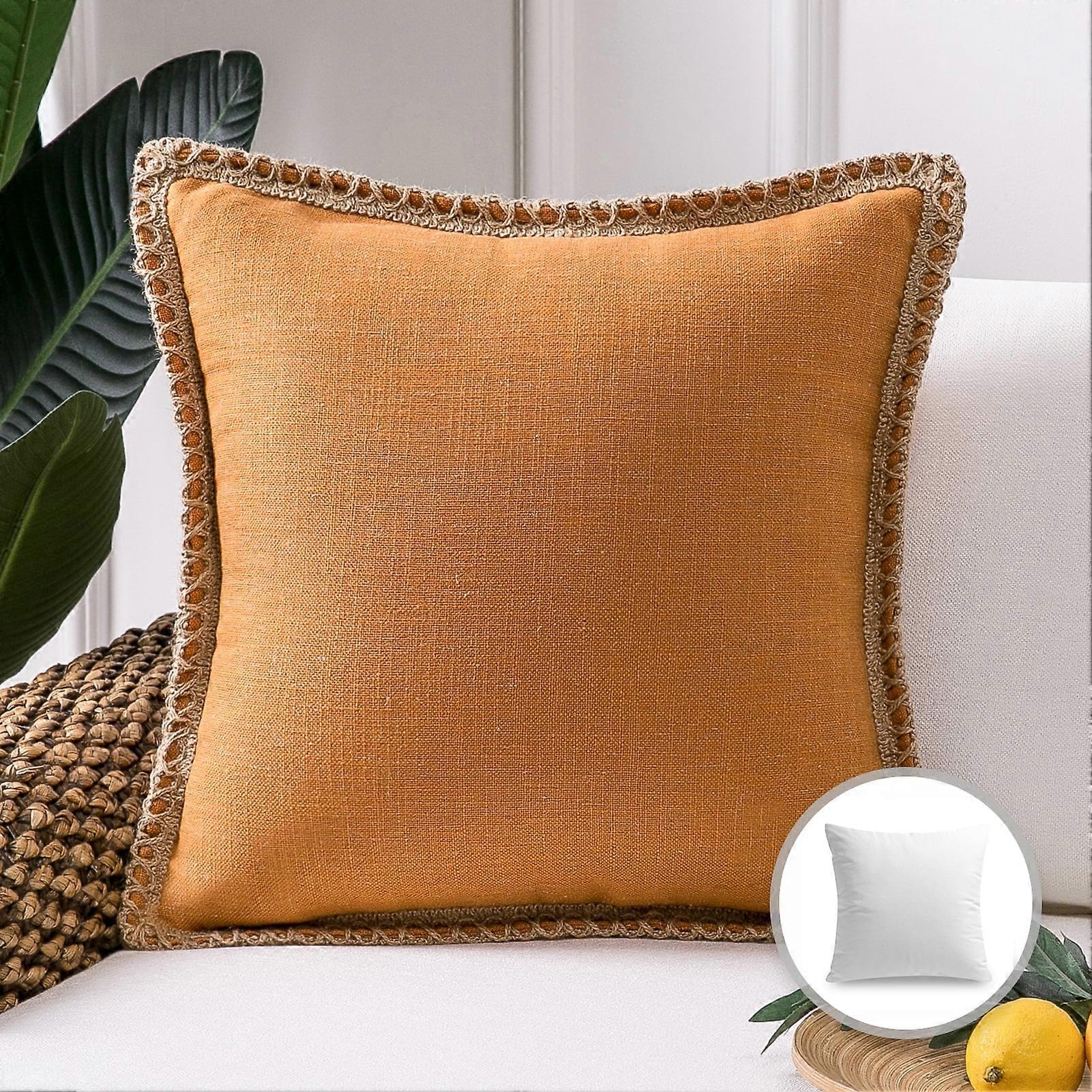 Phantoscope Linen Trimmed Farmhouse Series Decorative Throw Pillow, 20" x 20", Orange, 1 Pack