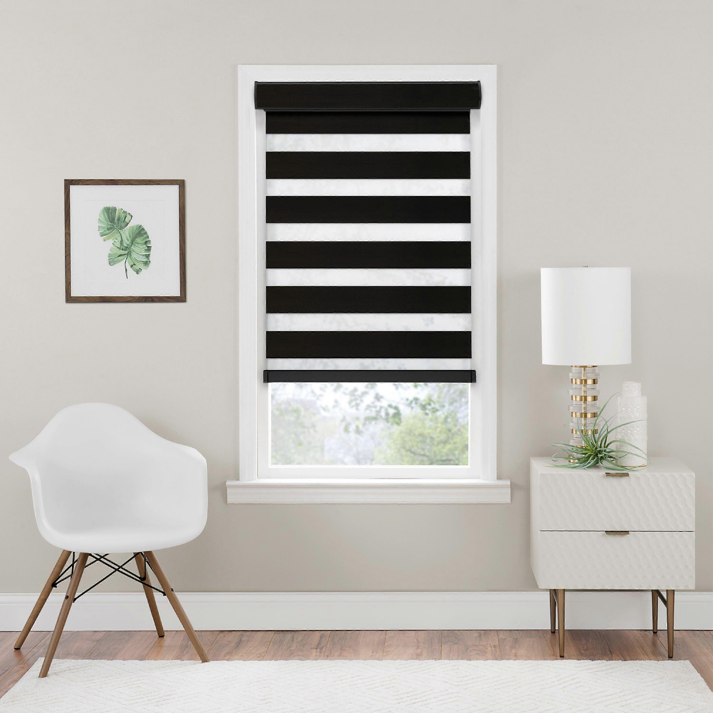 Achim Celestial Indoor Cordless Black Polyester Room Darkening Window Zebra Shade, 72" L x 23" W