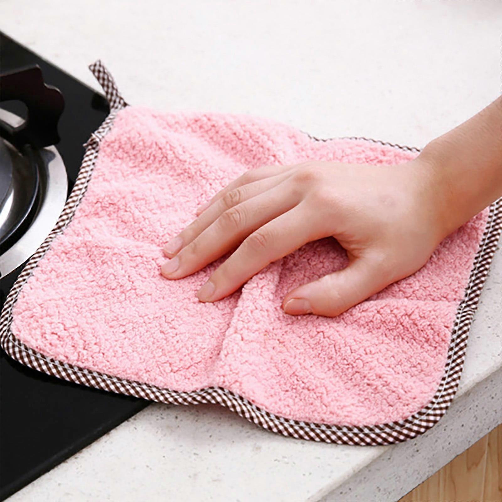 Uclet 10PCS Kitchen Cleaning Rags, Hangable Coral Velvet, Absorbent Thickened Scouring Pads, compatible with kitchen use