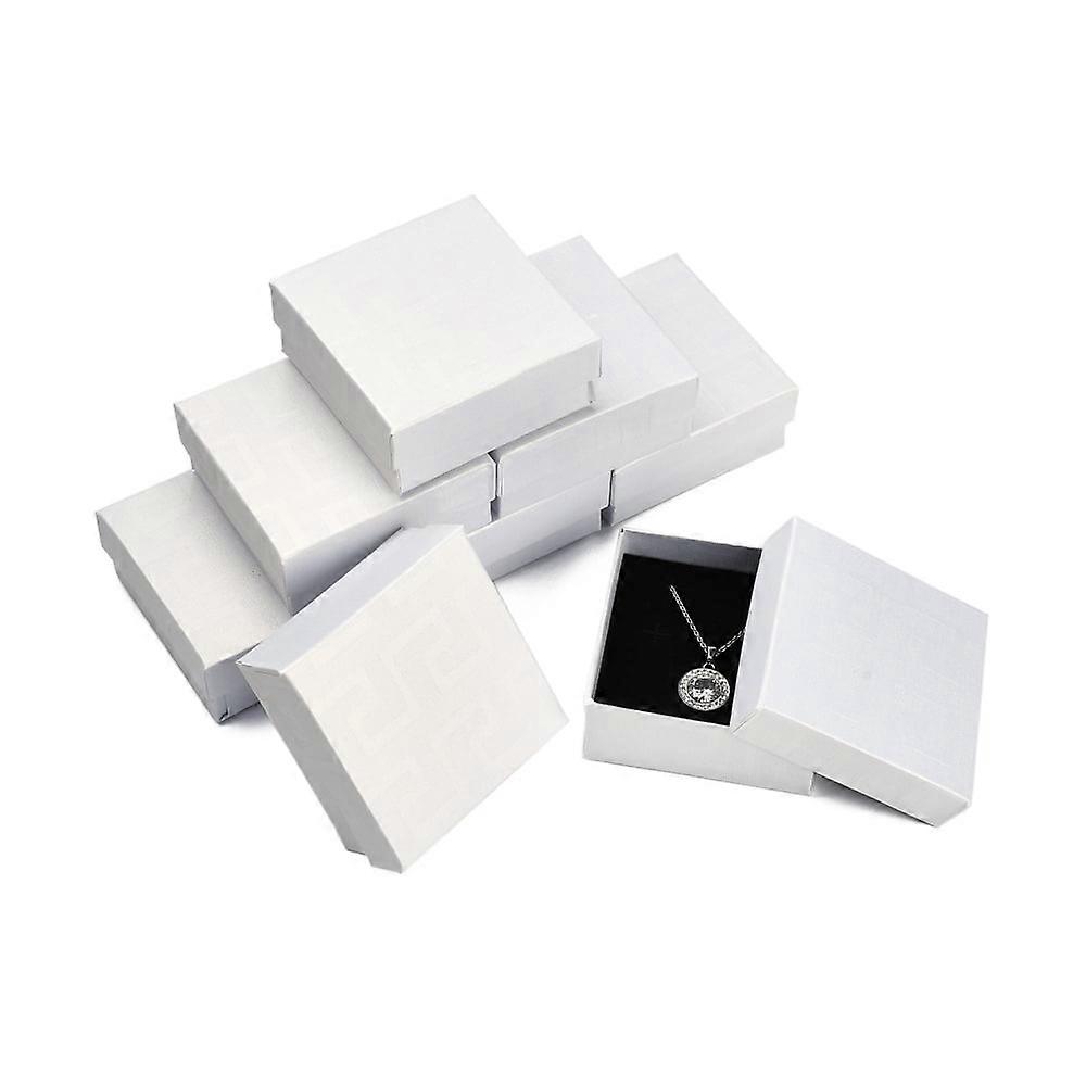 Cardboard Jewelry Boxes for Earring & Ring & Pendant with Sponge Inside Square White 7.5x7.5x3.5cm Inner Size: 7x7cm