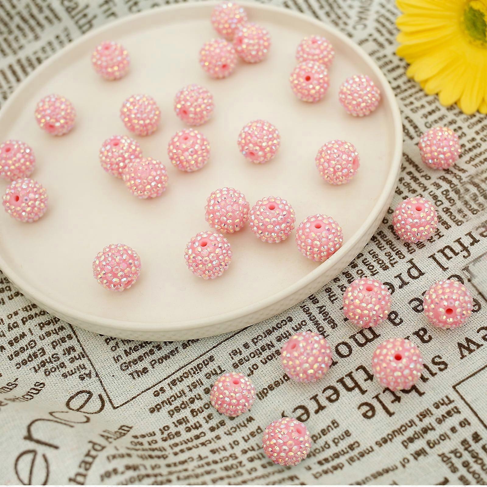 Wekvgz 30pcs 20mm Shiny Round Resin Rhinestone Beads Bulk Acrylic Spacer Beads for DIY Jewelry Bracelet Necklace Making