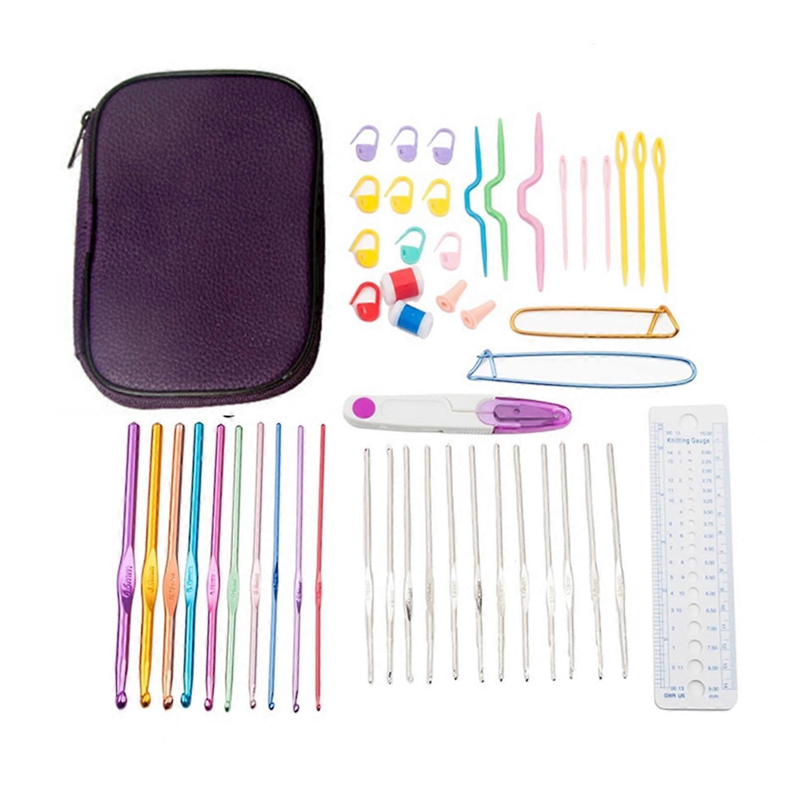 Knitting Craft Case Knitting Needles Kit Ergonomic Grip 22Pcs Soft Handles Homeworking Sewing Tool Crochet Hooks Set