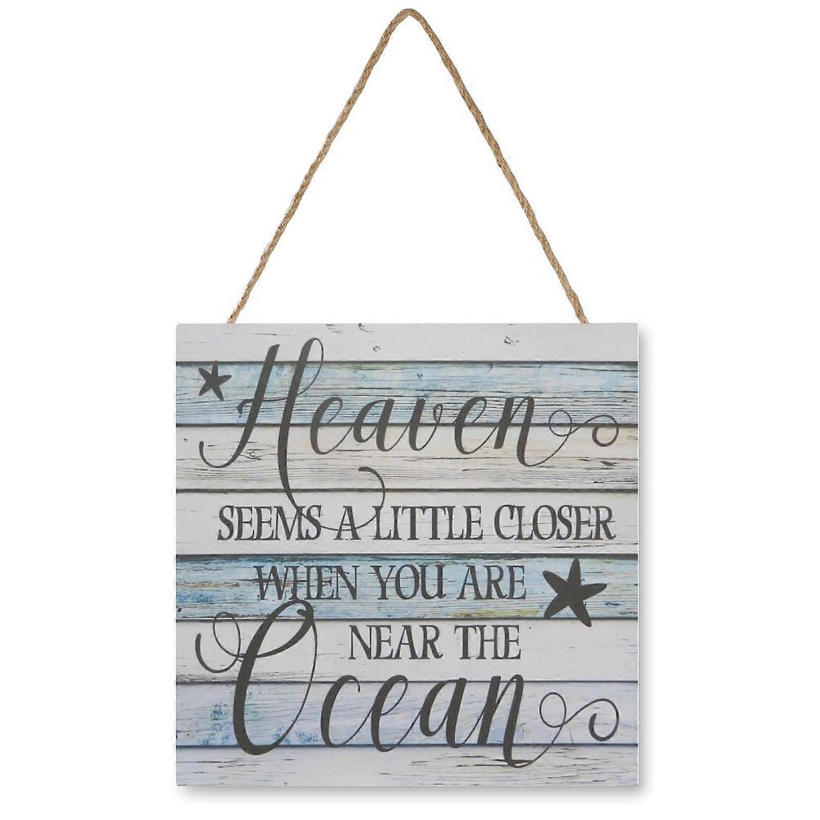 Rustic Wooden Signs: Heaven Seems a Little Closer When You're Near the Ocean, 12x12 inch Farmhouse Hanging Decorative Plaque