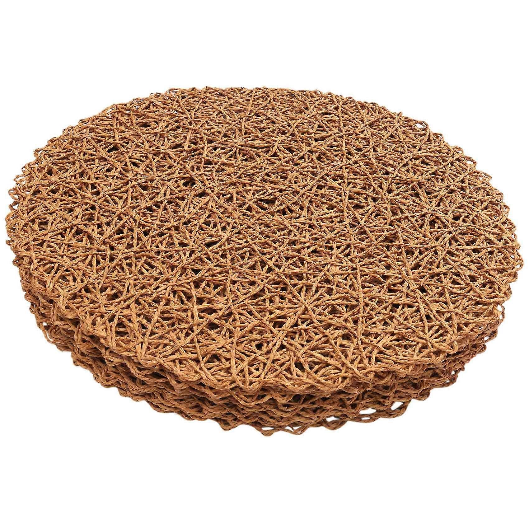 Round Paper Woven Placemats Decorative Rope Mesh Place Mats for Dining Party and Wedding 12PCS