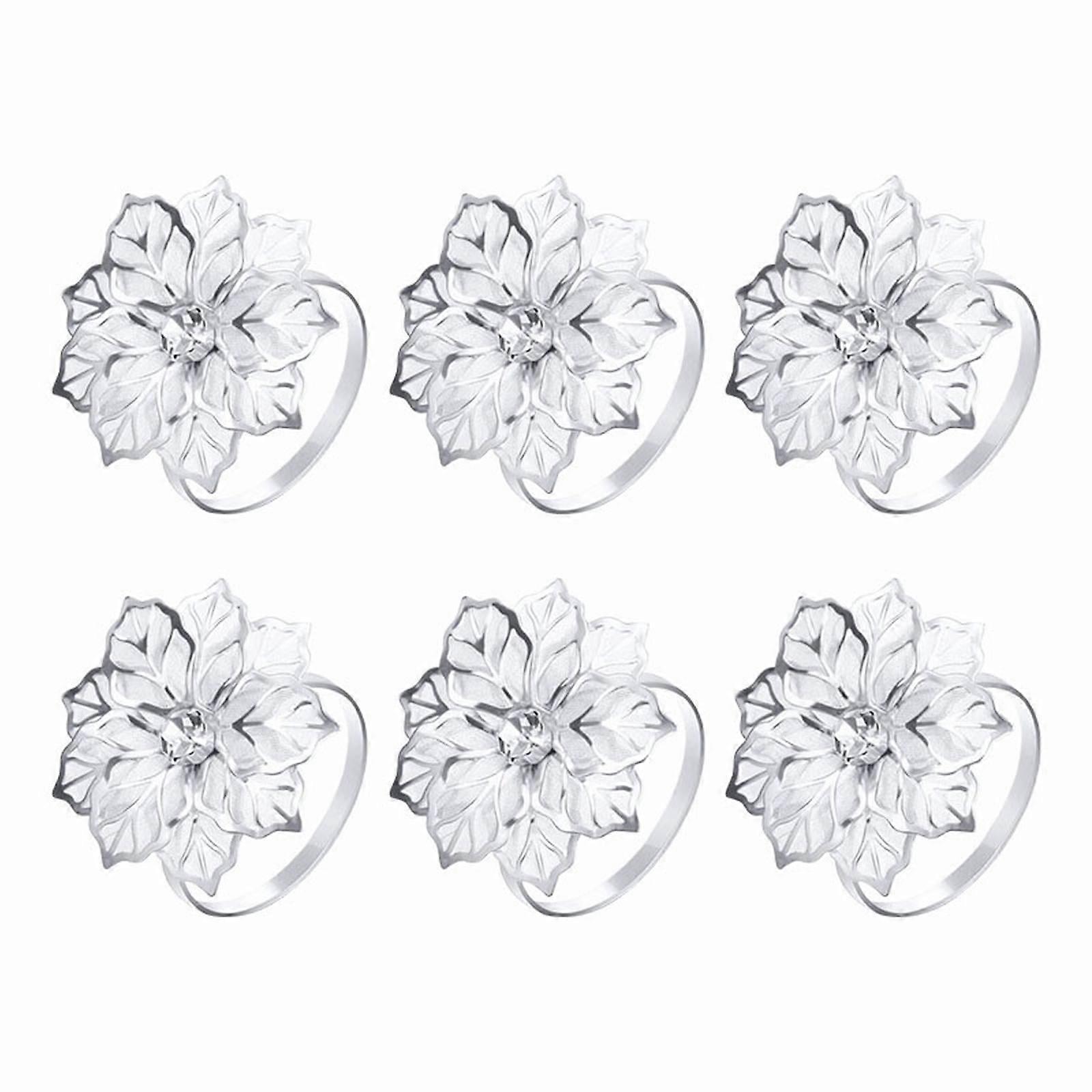 Stainless Steel Flower Napkin Rings, 6Pcs Metal Hollow-Out Alloy Napkin Holders, European Style Adornment