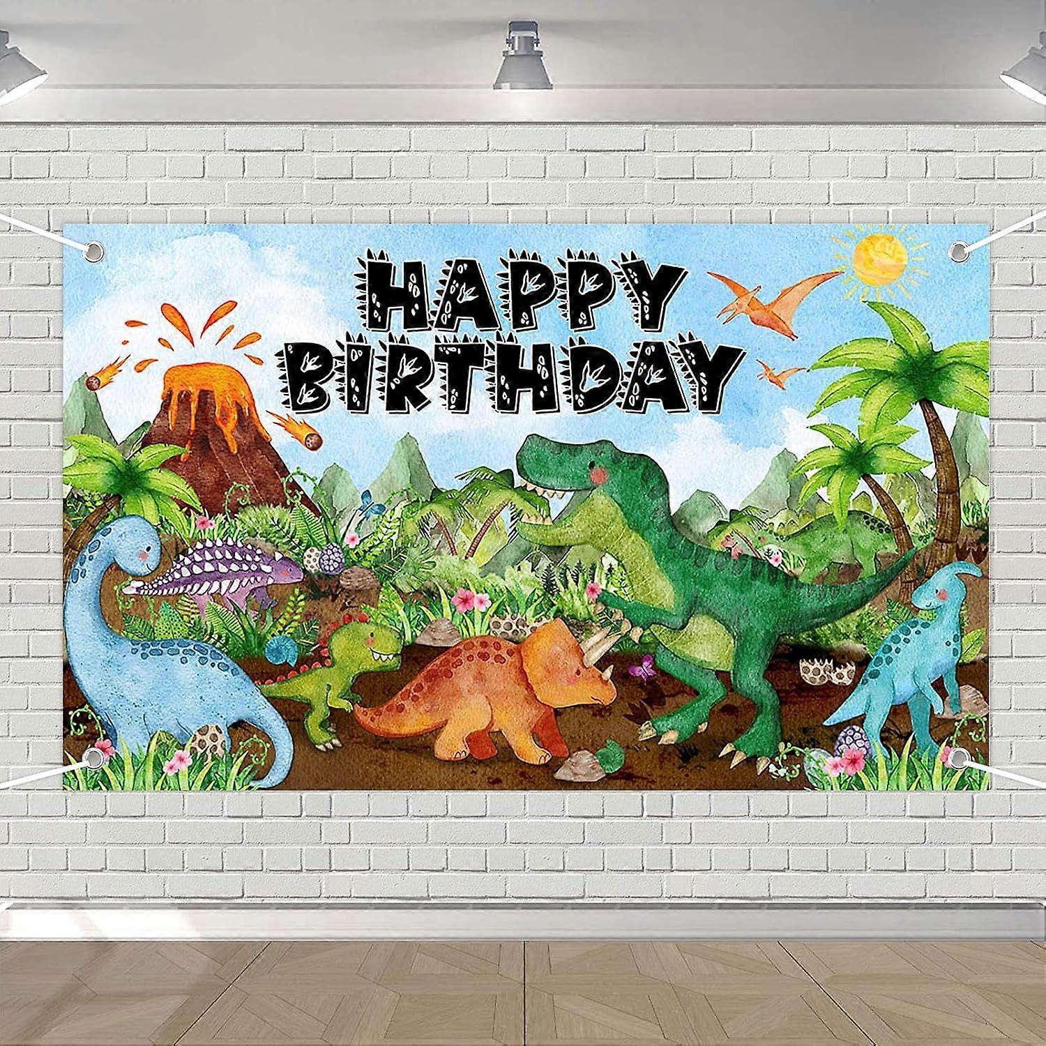 Dinosaur Birthday Banner for Kids Watercolor Dinosaur Happy Birthday Backdrop Cartoon Dinosaur Birthday Party Supplies Decoration