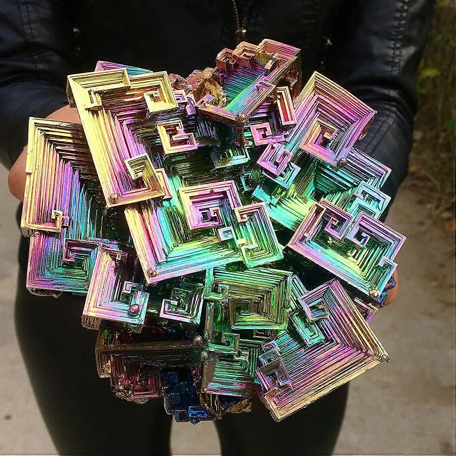 GOSOU Bismuth Crystals, Bi Metal Crystal Rainbow Bright Mineral Specimen, Natural Art Decor (160-200g)