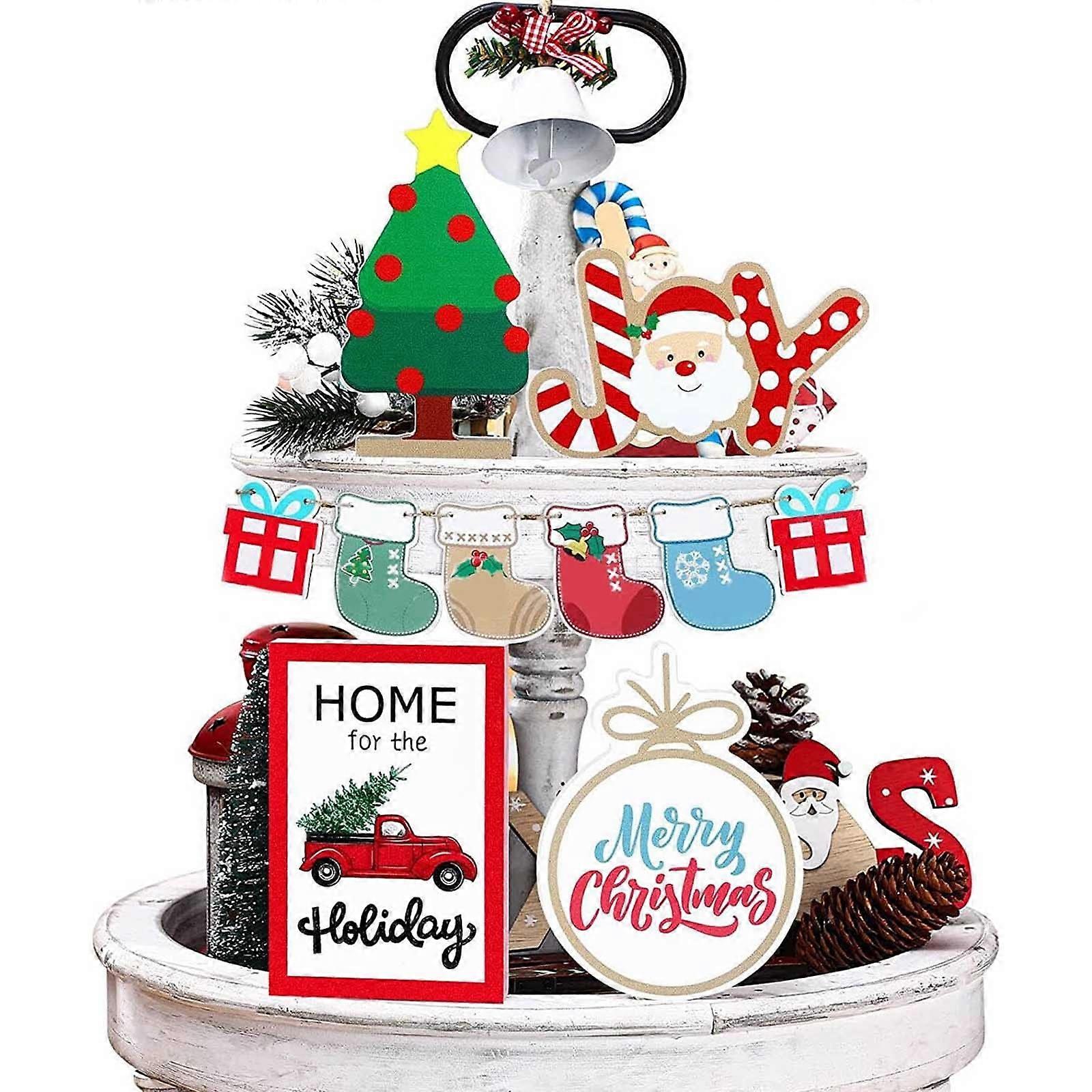 10Pcs Farmhouse Christmas Tiered Tray Decor Set - Perfect Fall & Halloween Holiday Decoration Bundle for Home & Kitchen Decor