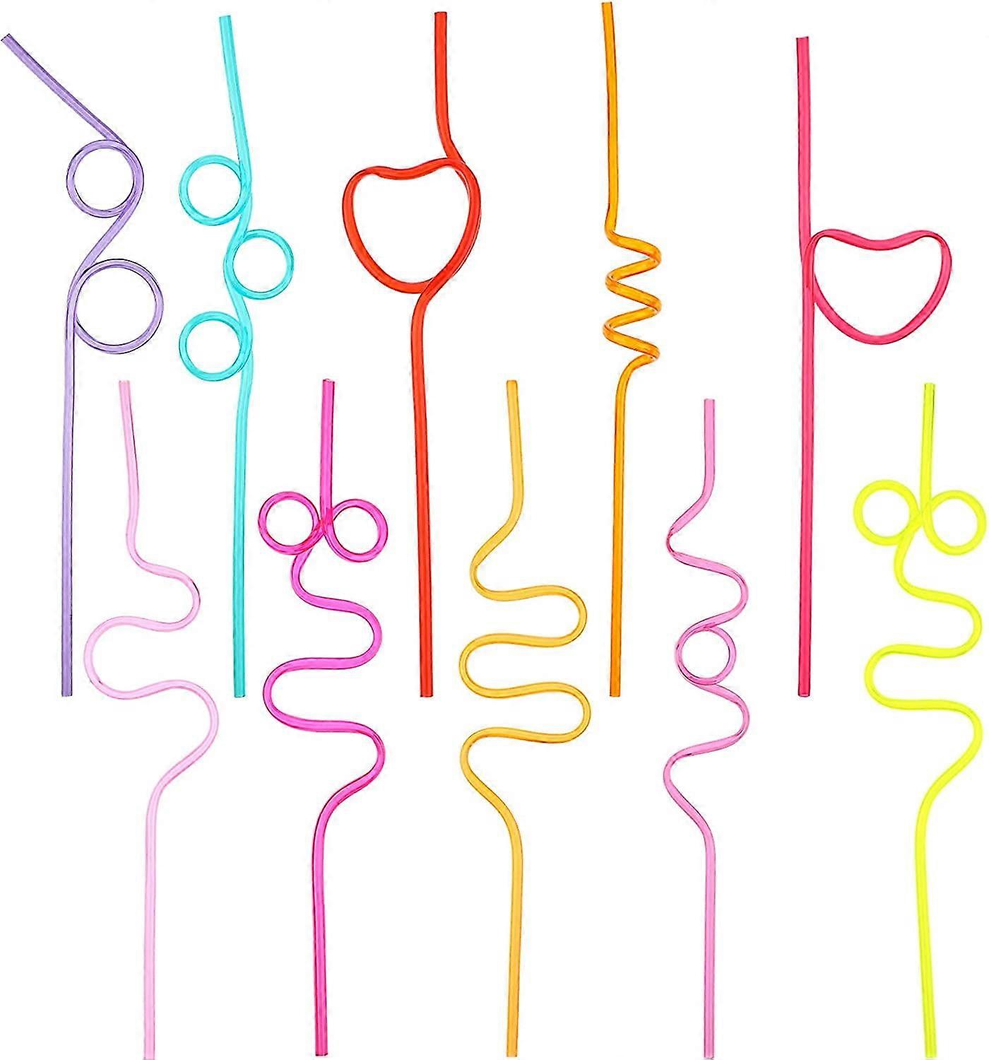 Happon Crazy Straws, 10 Pcs Reusable Silly Straws - Assorted Shapes & Colors - Plastic Crazy Loop Straws for Christmas Party Supplies