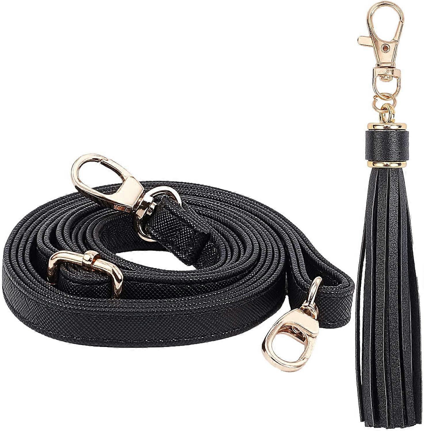Leather Bag Strap Set Black, Compatible with Purse Handbag Crossbody Shoulder Bag, 53" Adjustable Strap + Tassel w/ Buckles