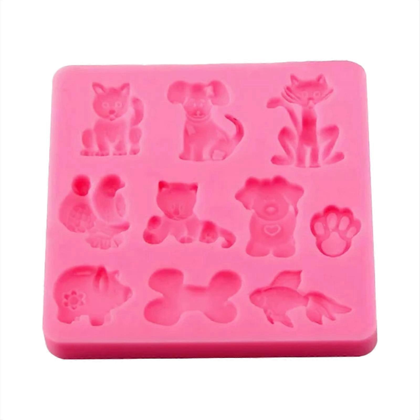 Poaug Biscuit Molds Clearance: Cute Cartoon Animals, Cats & Dogs, Liquid Silicone for Baking, Fondant, Chocolate - Pink, Compatible with Various