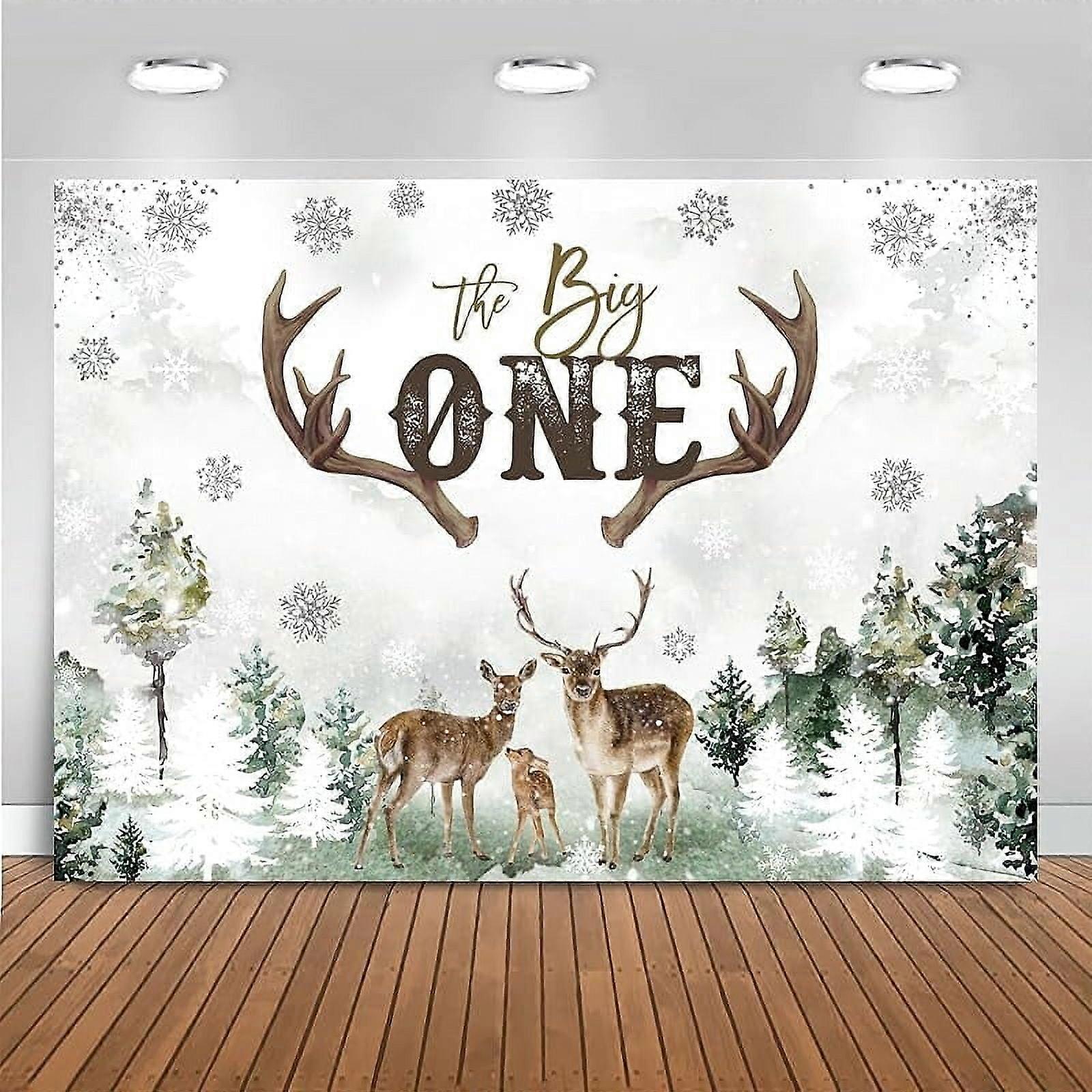 Custom Deer 1st Birthday Backdrop, Adventure Winter Forest Theme, Antlers Rustic Banner, Party Decoration Background (Green, 7x5ft)