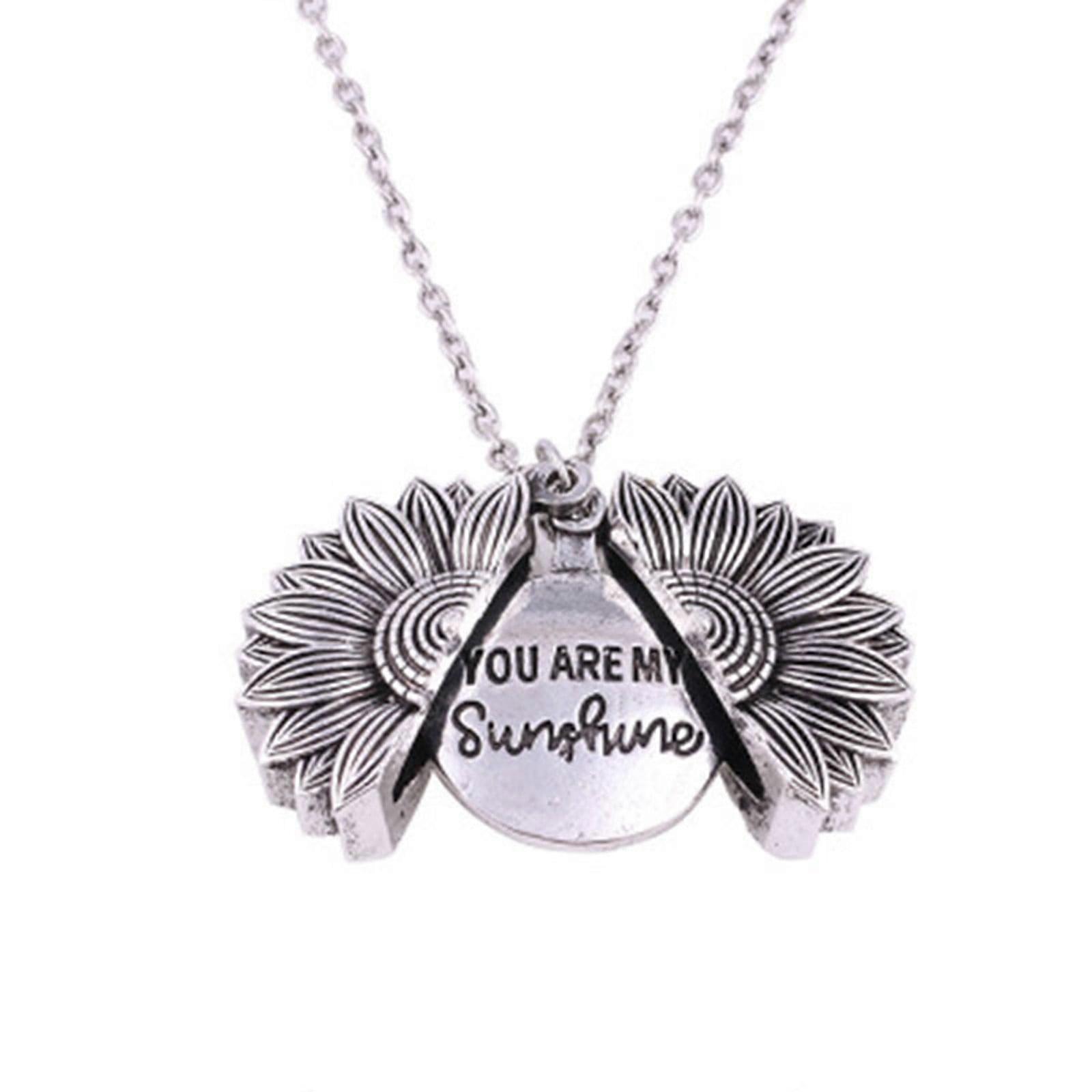 Tarmeek Necklaces for Women, Openable Clavicle Chain Sunflower Double Lettering Necklace, Valentine's Day Gifts, Compatible with Couples Gifts for