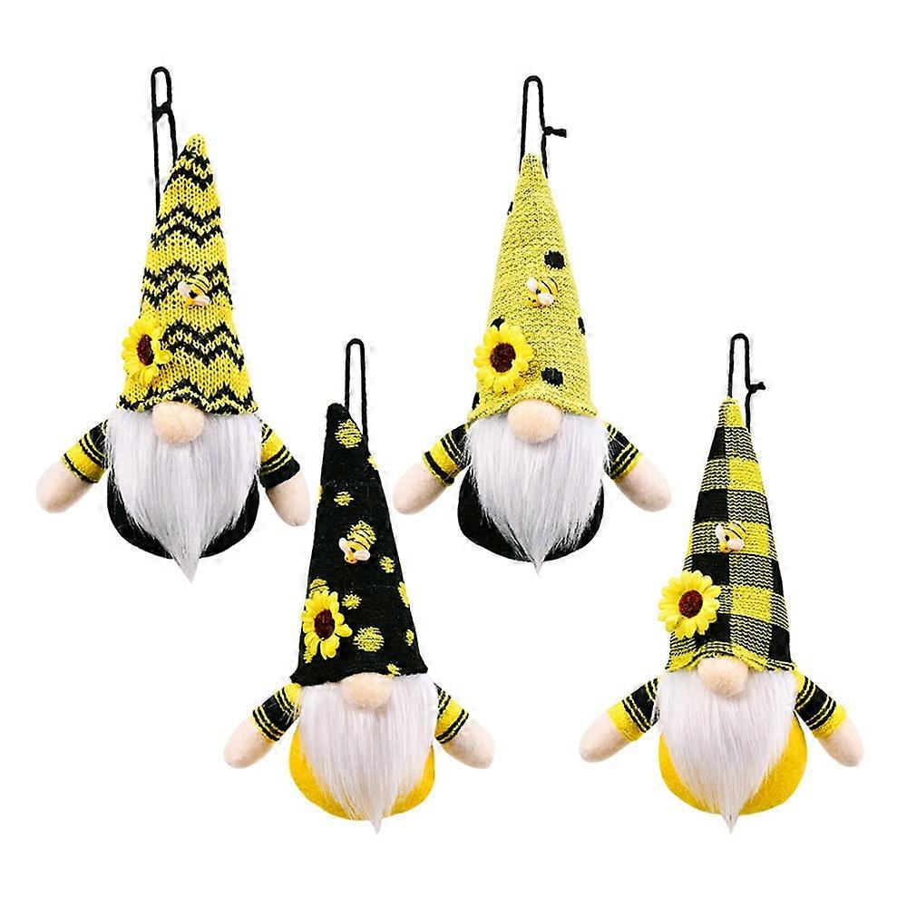 Bumble Bee Hanging Gnome Ornaments Set of 4, Handmade Swedish Honey Bee Elf Decor for Summer Home, Farmhouse Kitchen, Shelf or Tree – Compatible