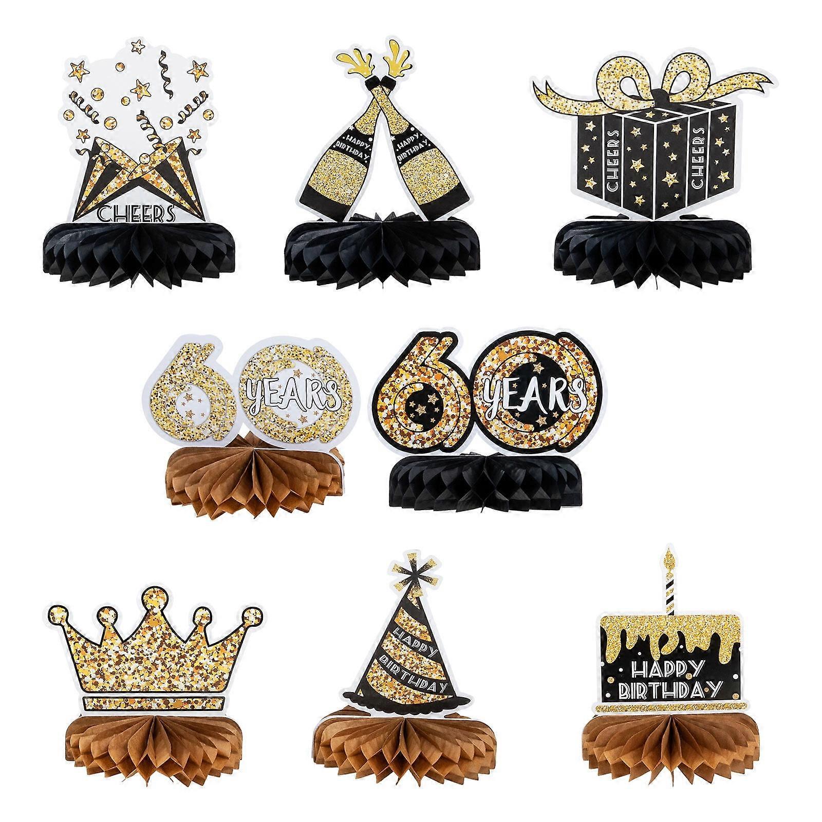 8 Pcs Happy Birthday Sign Honeycomb Ball Pendulum 60 Year Old Decorations Table Topper Desk
