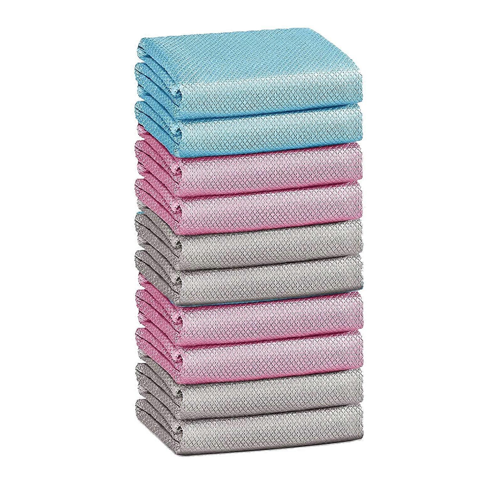 Giyblacko Microfiber Dish Towels 25x25cm, Double Sided Waffle & Coral Velvet, Bamboo Charcoal Fibre Cleaning Cloths, Kitchen Rags