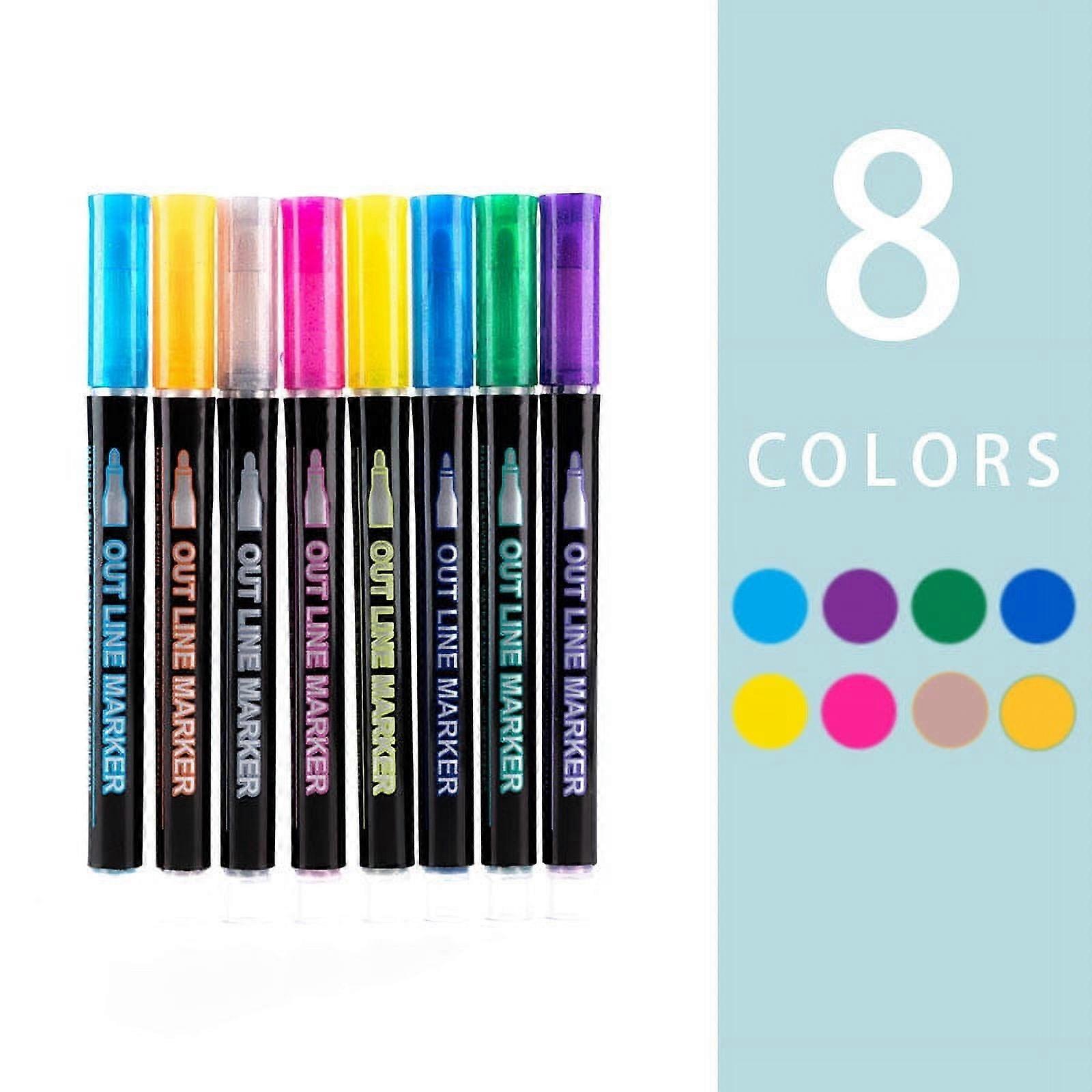 Viflosae Double Line Pens 8Color Hand Account Pens, Compatible with Office Stationery, Highlighter Marker Pens 10ml