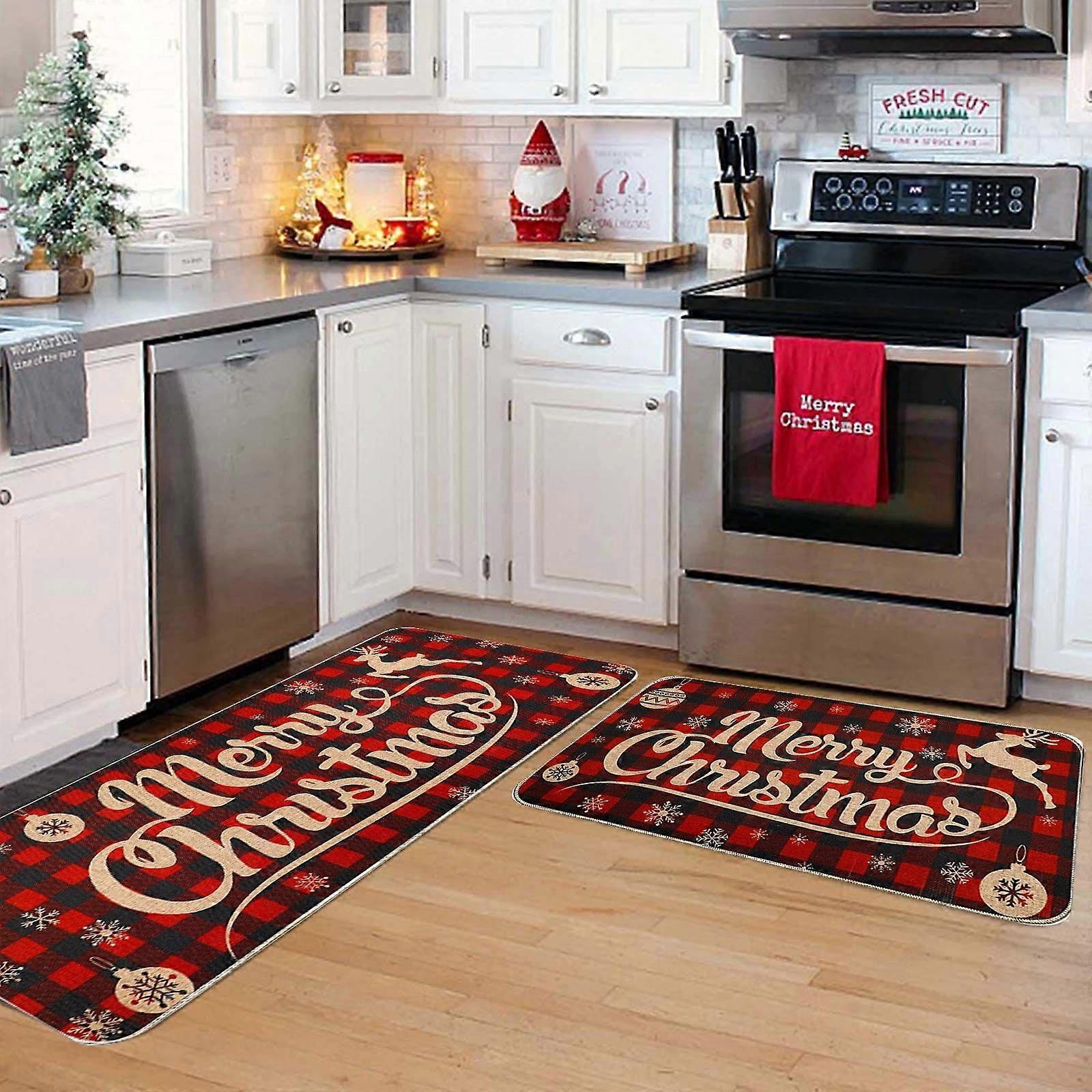 Christmas Kitchen Carpet Set (2 Pcs) Washable & Comfortable, Merry Xmas Design - Clearance