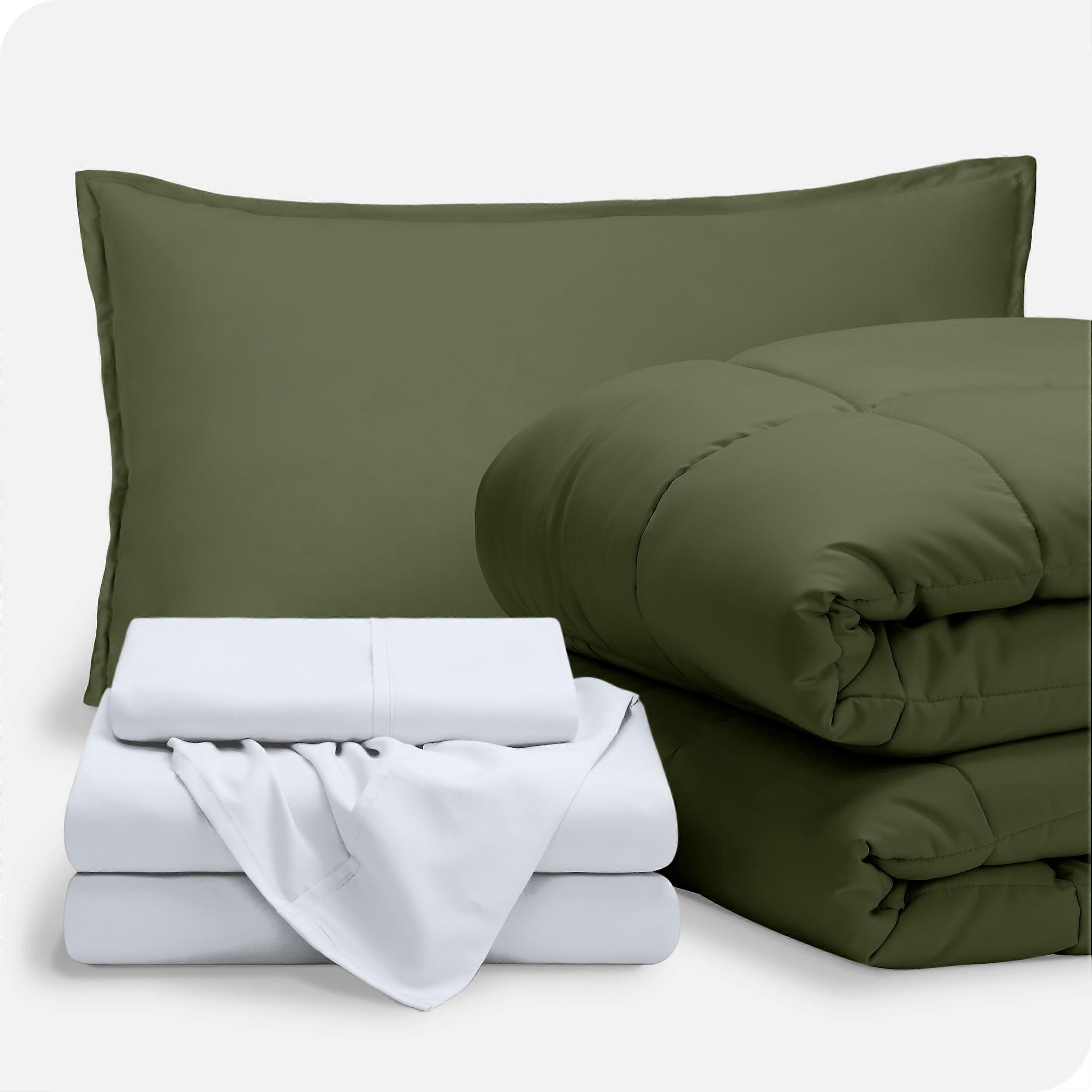 Bare Home 5-Piece Bed-in-a-Bag - Twin, Green with White Sheet Set