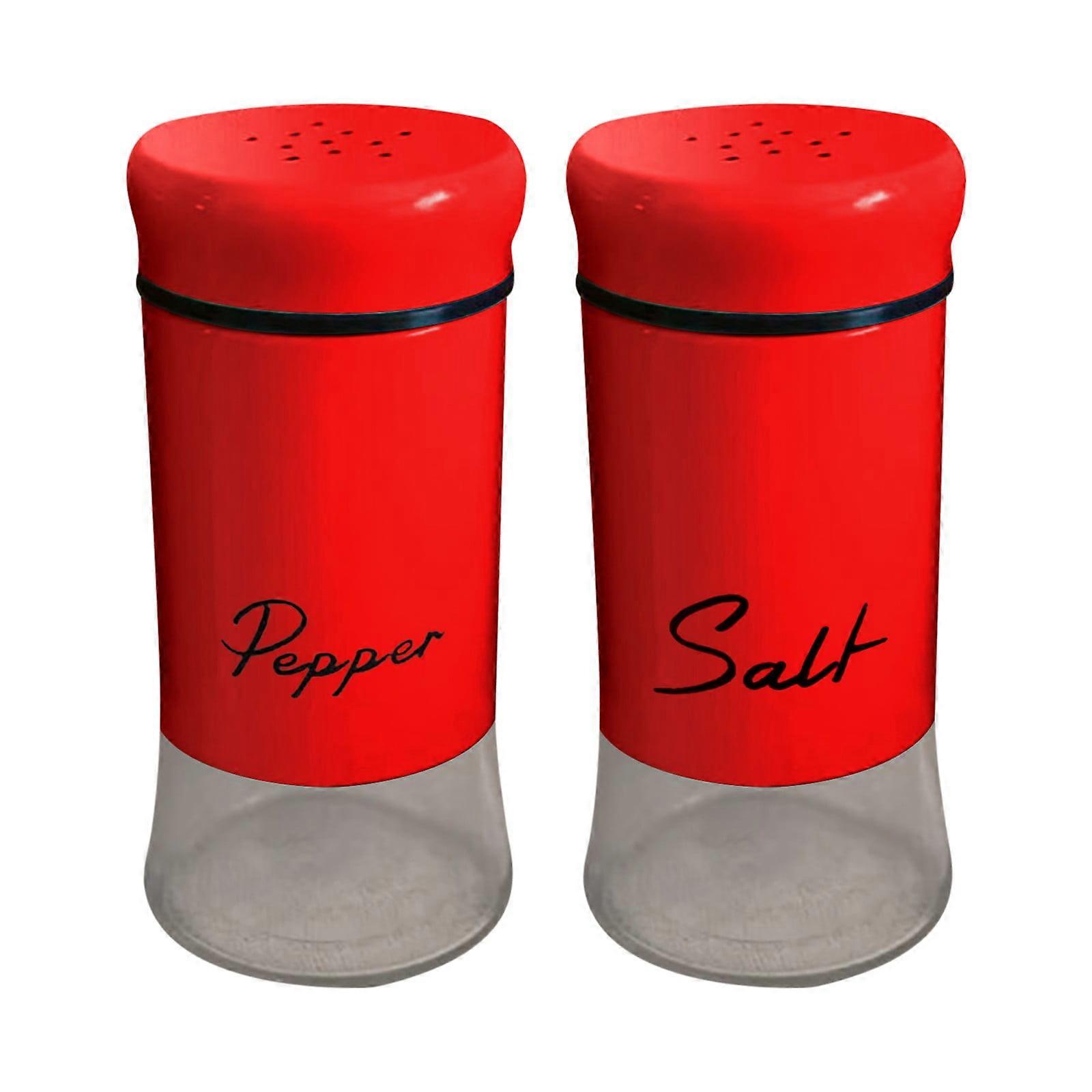 Beautynvta Salt & Pepper Shakers, Glass Bottom with Stainless Steel Lid, compatible with Kitchen Cooking & Baking, Red