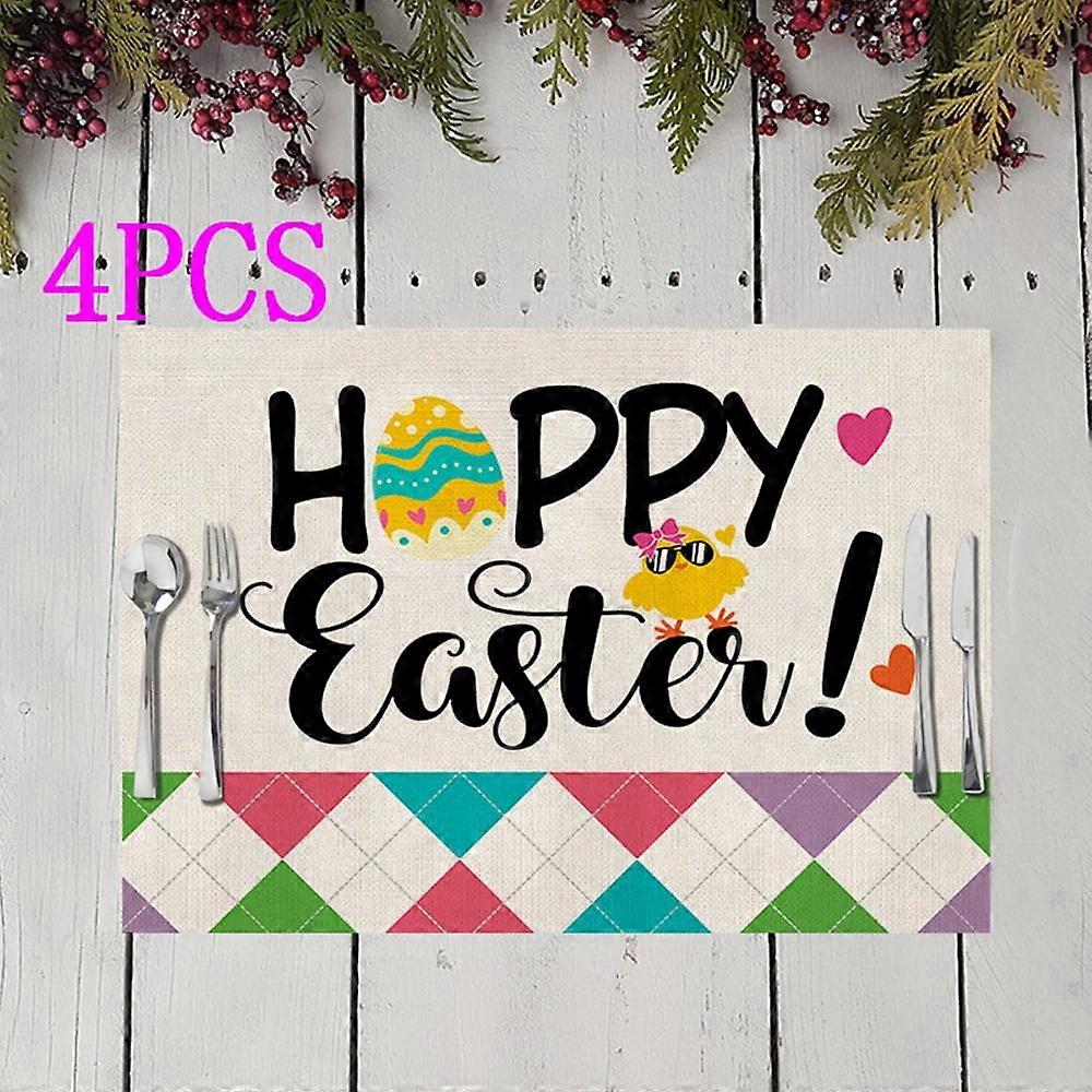 Happy Easter Bunny Placemats Set of 4, 12"x18", Double-Sided Print, Stain Resistant, Easter Eggs & Flowers Design