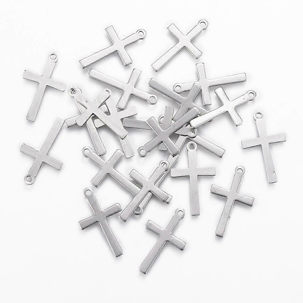 20pc 201 Stainless Steel Pendants Cross Stainless Steel Color 20.5x12x0.8mm Hole: 1mm