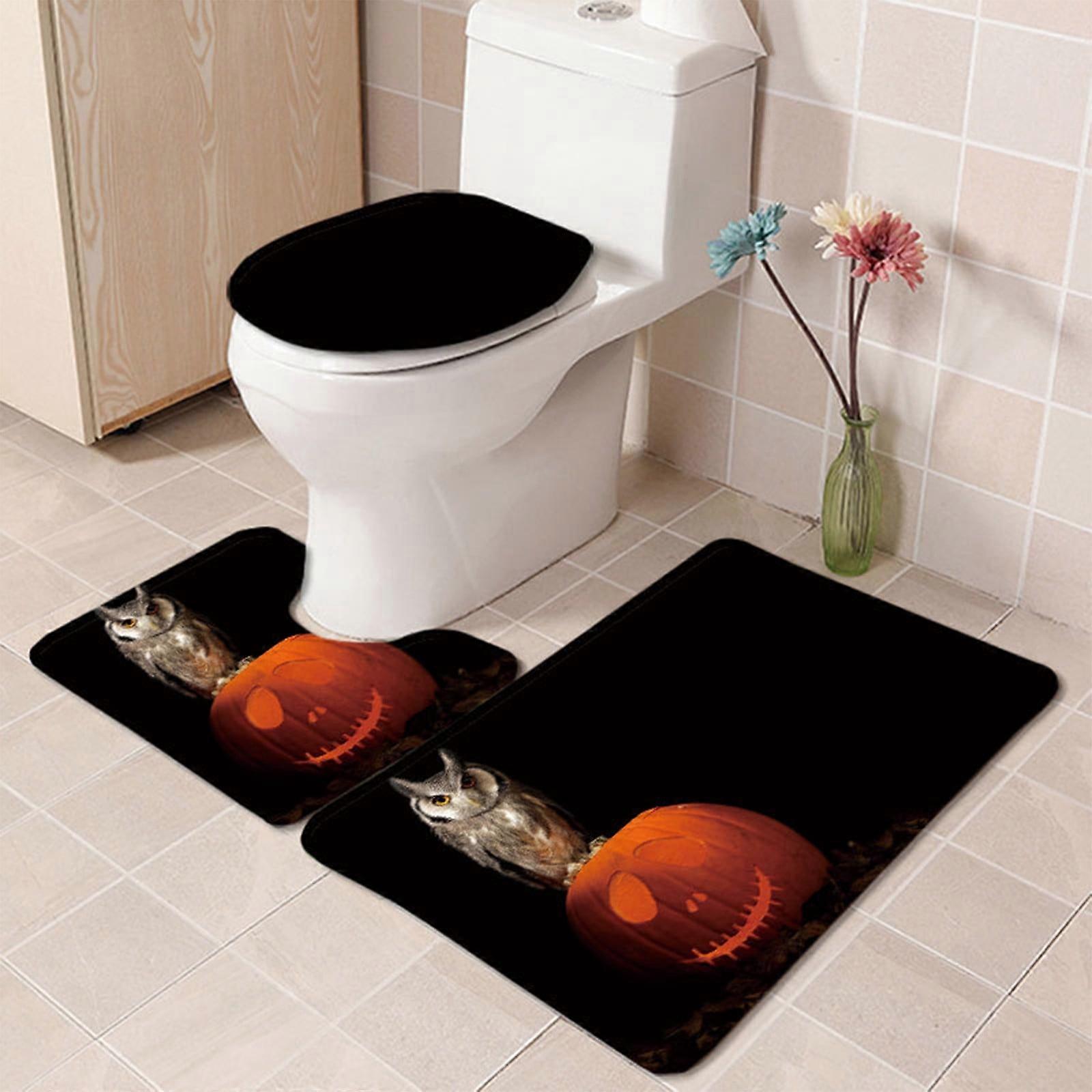 Ympuoqn Bathroom Super Absorbent Owl And Pumpkin Floor Mat Three-piece Bathroom Non-slip Mat U-shaped Floor Mat Toilet Seat Mat