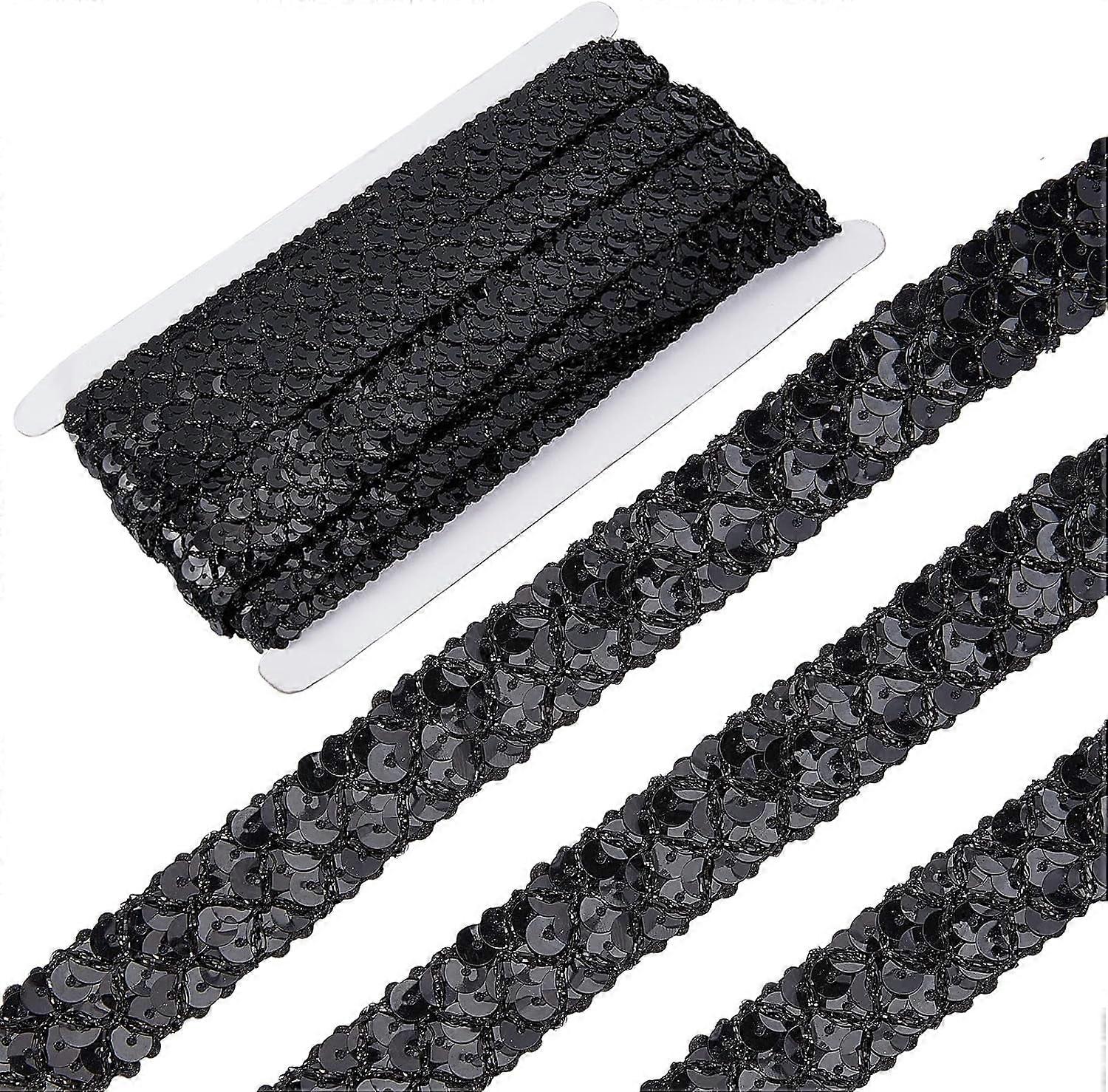 14Yds 0.78" Black Sequin Ribbon Trim, Glitter Lace with 3 Rows Paillettes, Beads & Sequins Roll for Sewing, Christmas Crafts, Costume, Home Decor
