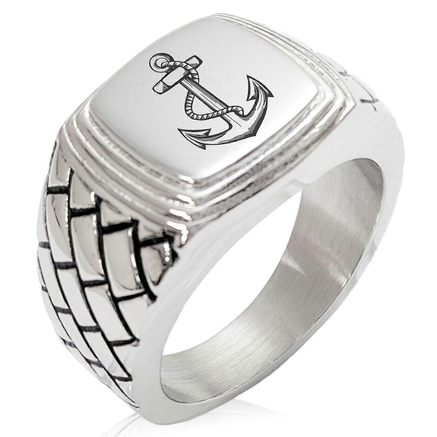At TIONEER, we use surgical grade stainless steel for our massive selection of metal jewelry. Surgical grade stainless steel is abundant in our collection due to its hard body, incredible resistance to corrosion and tarnish. Stainless Steel Mariner Nautical Anchor Geometric Pattern Step-Down Biker Style Polished RingSurgical Grade Stainless Steel Engraved Mariner Nautical Anchor Design Approx. Top Dimension: 0.63 inch x 0.57 inch (16 mm x 14.5 mm) Standard Fit Wear Polished Finish Style Surgical Grade Stainless Steel Engraved Mariner Nautical Anchor Design Approx. Top Dimension: 0.63 inch x 0.57 inch (16 mm x 14.5 mm) Standard Fit Wear Polished Finish Style