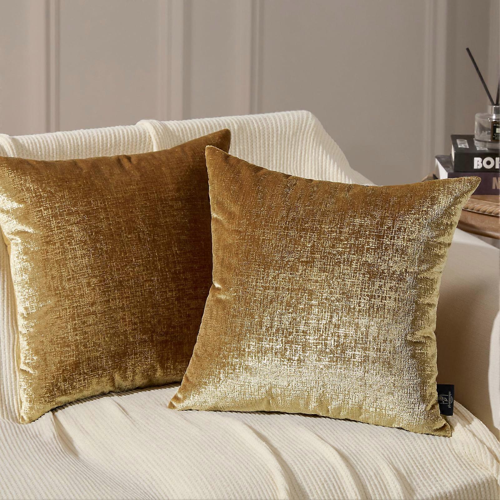 Phantoscope Bronzing Gold Foil Printed Cut Pile Velvet with Gilding Metallic Shiny Decorative Throw Pillow, 20" x 20", Gold, 2 Pack