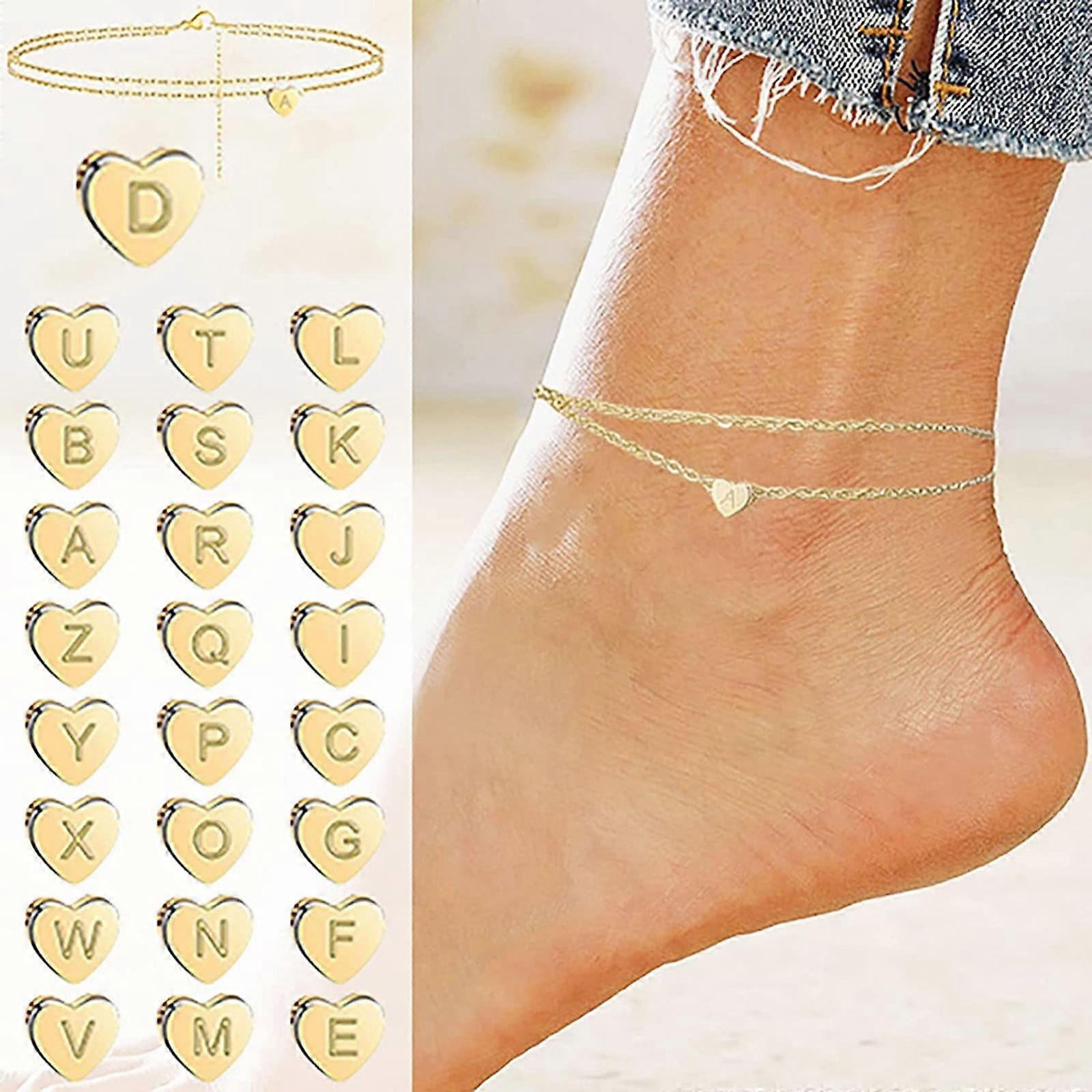 Jacenvly 2024 New Jewelry Organizer Clearance: Heart Initial Beach Bracelets for Women, 14K Gold Filled Dainty Layered Anklet, Letter Initial Heart