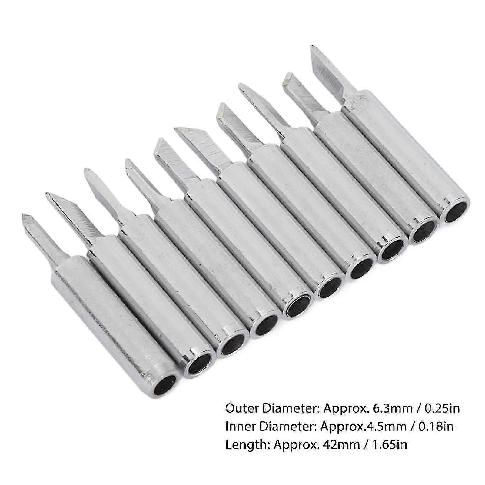 1DURABLE MATERIALS: The soldering iron tips are all made of excellent, environmentally friendly materials and are durable for a long service life, useful and practical 2ACCURATE TEMPERATURE: Welding iron tips use a constant temperature design to maintain a stable operating temperature and provide efficient and accurate welding results 3MULTI FUNCTIONAL APPLICATION: Adopt internal soldering tip design, suitable for various welding tasks, temperature adjustment range from 200450 4WITH HOLES: Soldering station soldering iron tips are easy to tin, with holes welding head tip, can cope with a variety of details processing needs, more convenient 510PCS IN TOTAL: The package contain a total of 10pcs soldering station replacement soldering iron tips, enough for you to replace and use, meet different using needs
