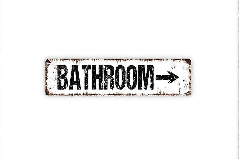 Bathroom With Arrow Sign Restroom El Bano Toilet Guest Bath Rustic Street Metal Sign or Door Name Plate Plaque Size: 4 x 16 Inch