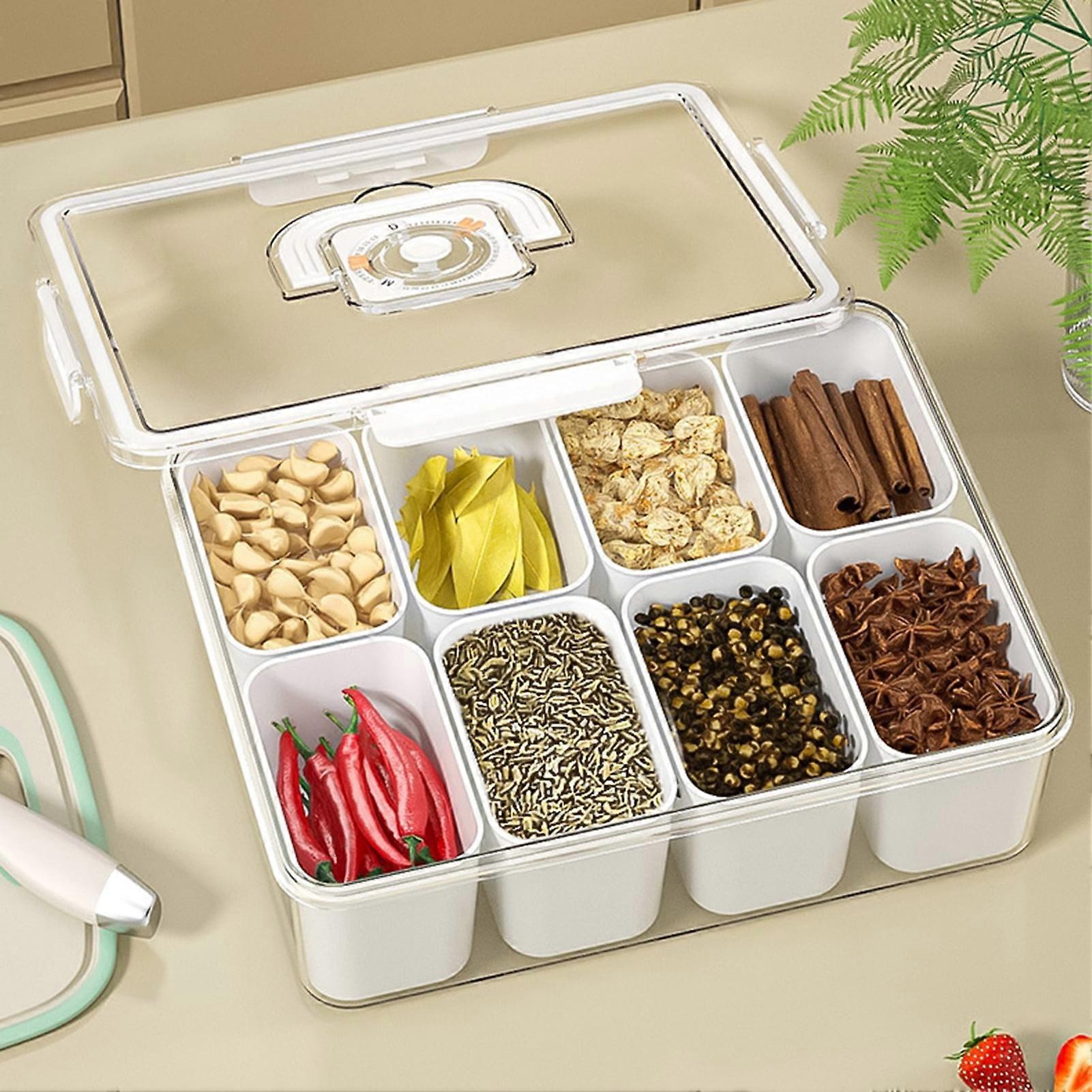 SUSUchens Fridge Storage Box with Transparent Sealed Lid, 2 Grids, Date Marking, Compatible with Spice, Snack, Fruit, Garlic, Ginger
